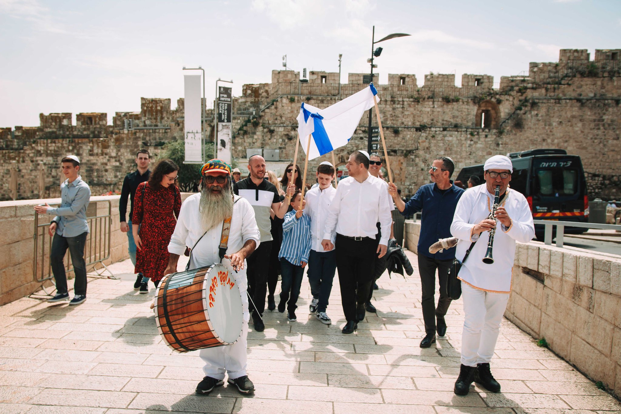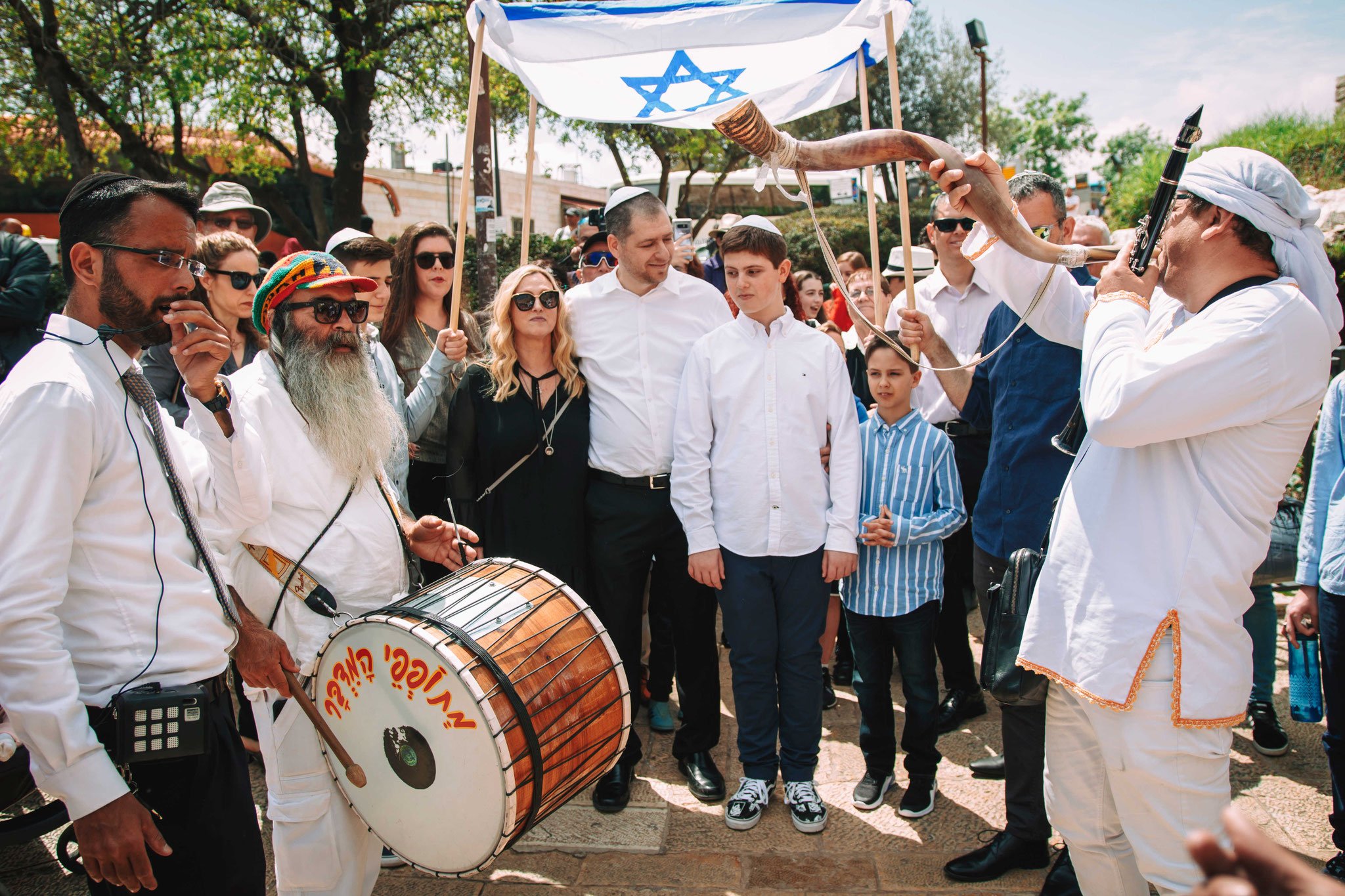 תהלוכה מתופפים ושופרות לבר מצווה בכותל