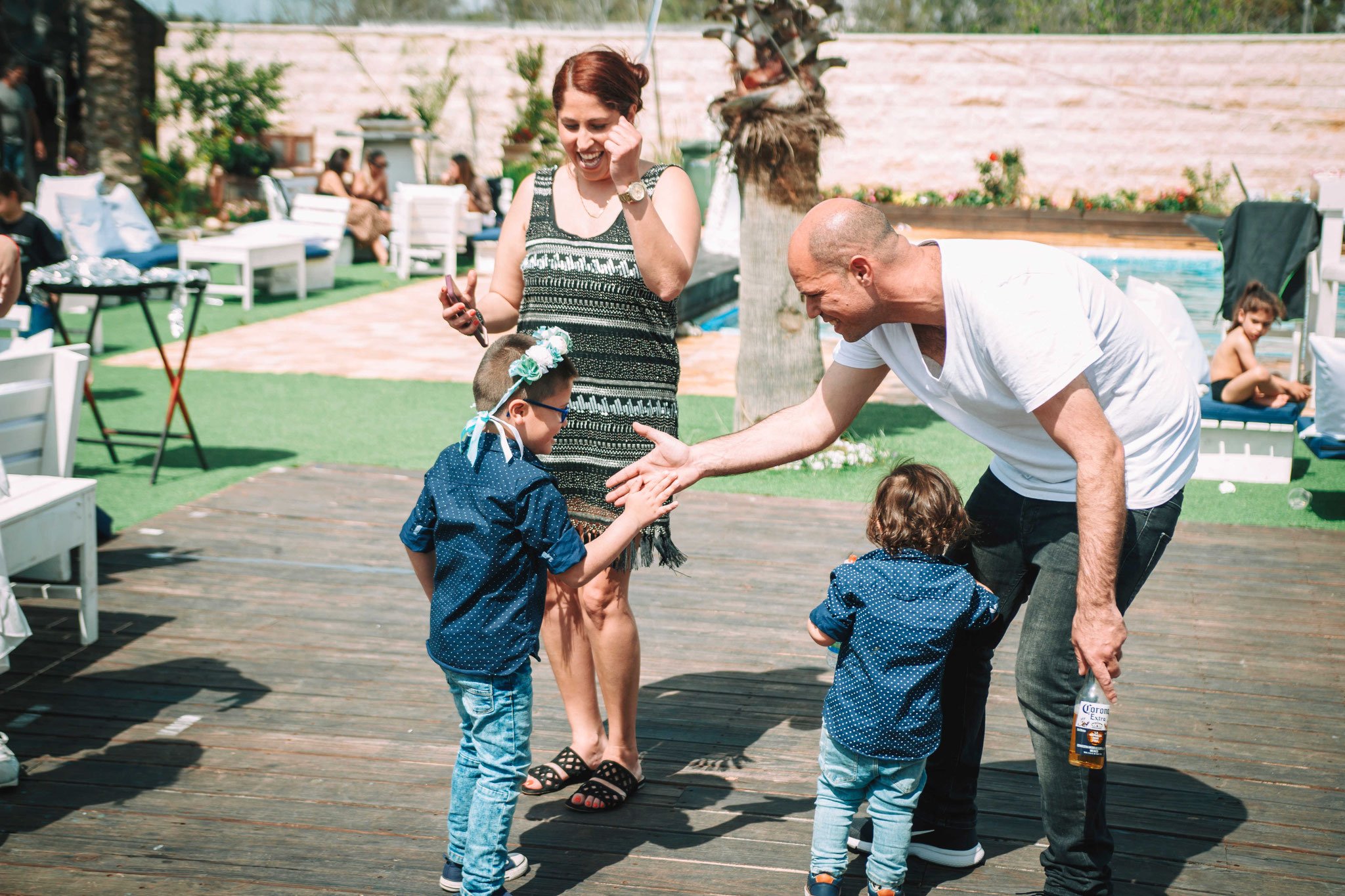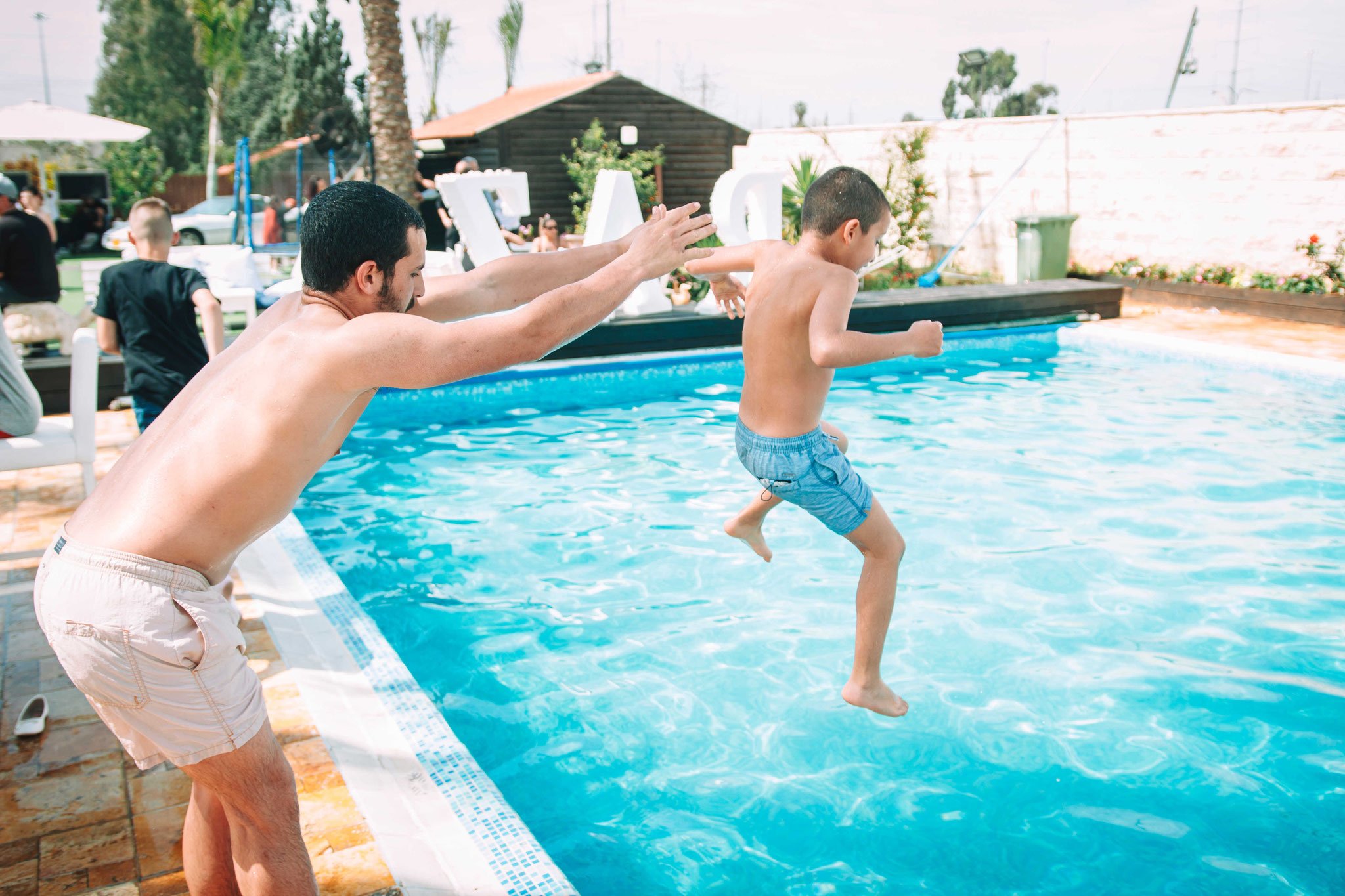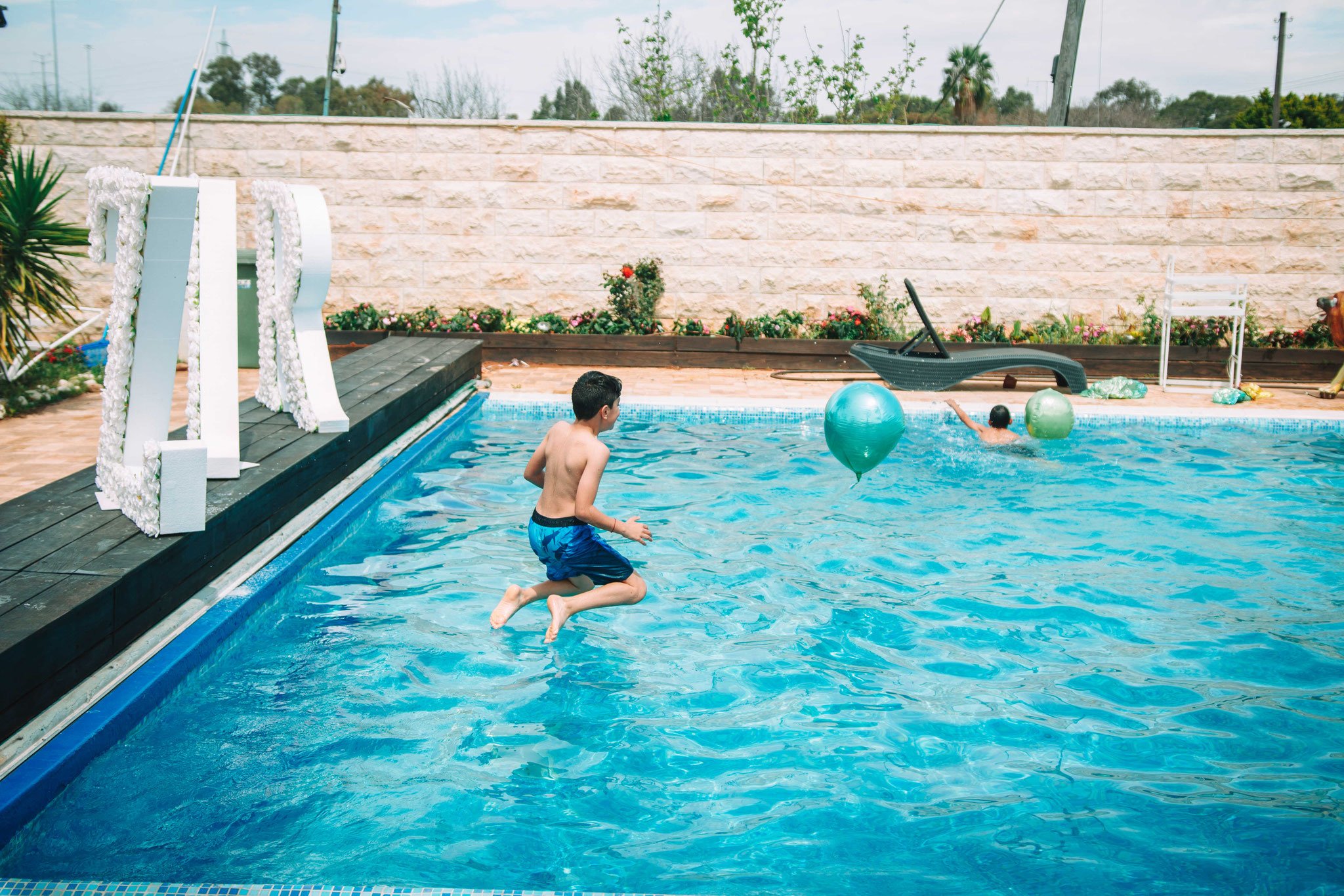 האורחים באו, הקייטרינג מגיע, שפע של אוכל, הכול בול כמו שההורים רצו. הכול מרווח ומסודר. בעוד הצלם מסתובב בין האורחים ומצלם, וגם לחברי בתור חתן-בר -המצווה יש חובה להראות נוכחותו ולהסתובב בין כולם, וחלק רצו להצטלם אתו. אני הייתי בשולחן הסנוקר עם החברים ומשם איך לא? – לבריכה!!. זהו יום משוחרר ולא כבד פורמאלי כזה, אז לחבר שלי אין דרשה לנאום ואין הדלקת נרות או כול הדברים שאותנו משעממים ולמבוגרים זה חשוב. אחריי שהוא הסתובב קצת הוא מצטרף אלינו. המבוגרים בשלהם בין אם בבר-המשקאות, או ליד השולחן ואוכלים, חלק בפינת הזולה, המוסיקה ברקע, האווירה כיפית. אנחנו בבריכה, הילדים הקטנים יותר בטרמפולינה. כל אחד ואחת מוצאים את מקומם בחגיגה המרגשת, יש פה משהוא עבור כל אחד מאיתנו ועדיין תחושה מרגשת של חיבור לאותה השמחה- השמחה של חתן בר-המצווה. הצלם על פי בקשתה של אימו של חברי הטוב, עובר בין כולם ומנציח במצלמתו סיטואציות מרגשות. כידוע, סוכם גם על ווידאו, אז ממש התרגשתי שהצלם מגיע ומצלם אותנו בווידאו שאנו בבריכה. זה הזמן שלנו להראות את הפוזות והצחוקים ולהיות יצירתיים מול המצלמה. נעמדנו על שפת הבריכה בטור, כל אחד נוגע בשני ונופל למים, אחד אחריי השני בסדר מופתי. אנו צוחקים, נרגשים ומתלהבים. לא יכולתי לבקש אירוע יותר מרגש מזה בעבור החבר הטוב שלי