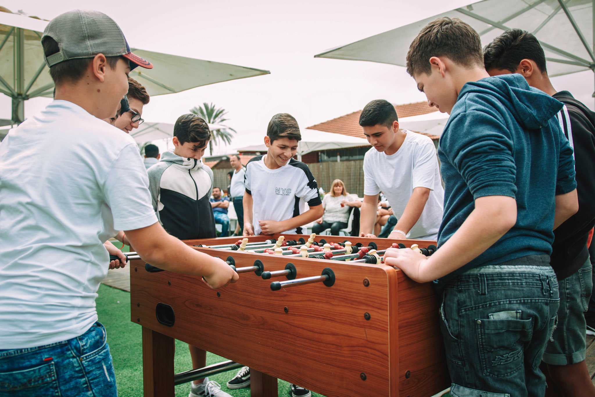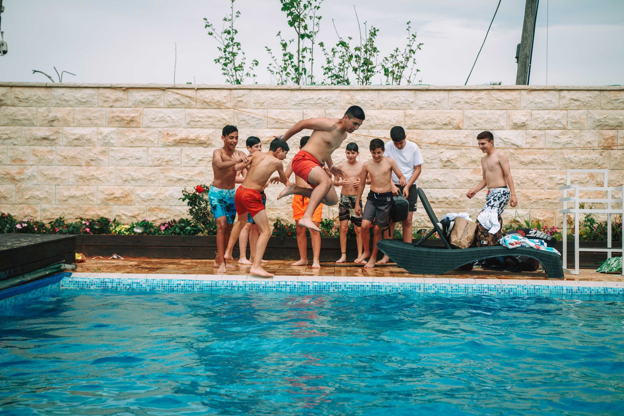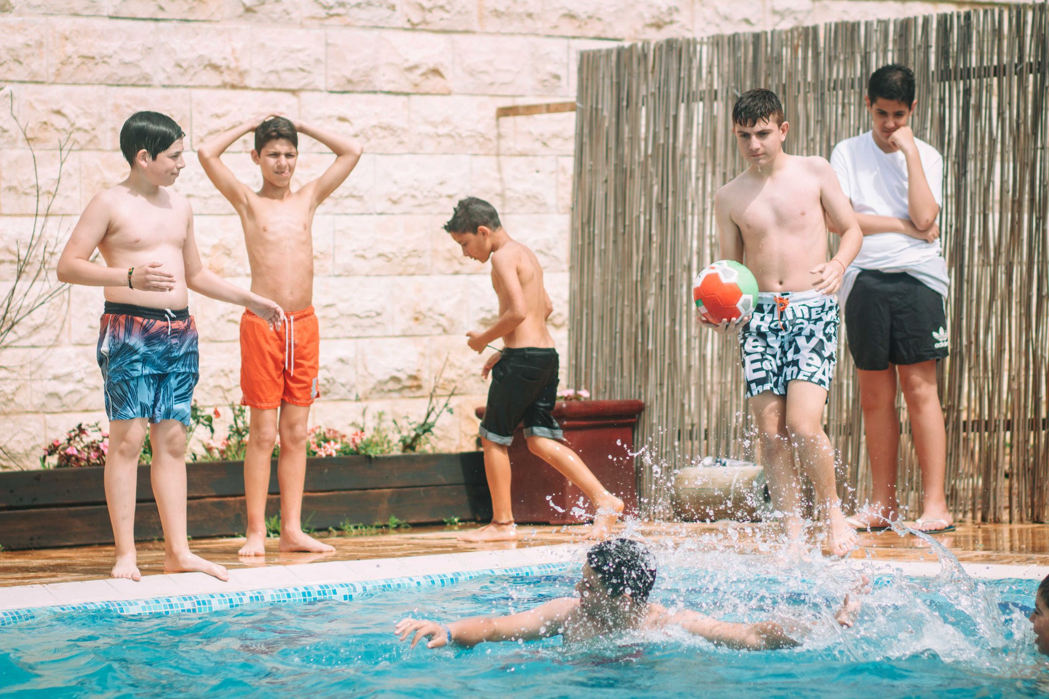 האורחים באו, הקייטרינג מגיע, שפע של אוכל, הכול בול כמו שההורים רצו. הכול מרווח ומסודר. בעוד הצלם מסתובב בין האורחים ומצלם, וגם לחברי בתור חתן-בר -המצווה יש חובה להראות נוכחותו ולהסתובב בין כולם, וחלק רצו להצטלם אתו. אני הייתי בשולחן הסנוקר עם החברים ומשם איך לא? – לבריכה!!. זהו יום משוחרר ולא כבד פורמאלי כזה, אז לחבר שלי אין דרשה לנאום ואין הדלקת נרות או כול הדברים שאותנו משעממים ולמבוגרים זה חשוב. אחריי שהוא הסתובב קצת הוא מצטרף אלינו. המבוגרים בשלהם בין אם בבר-המשקאות, או ליד השולחן ואוכלים, חלק בפינת הזולה, המוסיקה ברקע, האווירה כיפית. אנחנו בבריכה, הילדים הקטנים יותר בטרמפולינה. כל אחד ואחת מוצאים את מקומם בחגיגה המרגשת, יש פה משהוא עבור כל אחד מאיתנו ועדיין תחושה מרגשת של חיבור לאותה השמחה- השמחה של חתן בר-המצווה. הצלם על פי בקשתה של אימו של חברי הטוב, עובר בין כולם ומנציח במצלמתו סיטואציות מרגשות. כידוע, סוכם גם על ווידאו, אז ממש התרגשתי שהצלם מגיע ומצלם אותנו בווידאו שאנו בבריכה. זה הזמן שלנו להראות את הפוזות והצחוקים ולהיות יצירתיים מול המצלמה. נעמדנו על שפת הבריכה בטור, כל אחד נוגע בשני ונופל למים, אחד אחריי השני בסדר מופתי. אנו צוחקים, נרגשים ומתלהבים. לא יכולתי לבקש אירוע יותר מרגש מזה בעבור החבר הטוב שלי