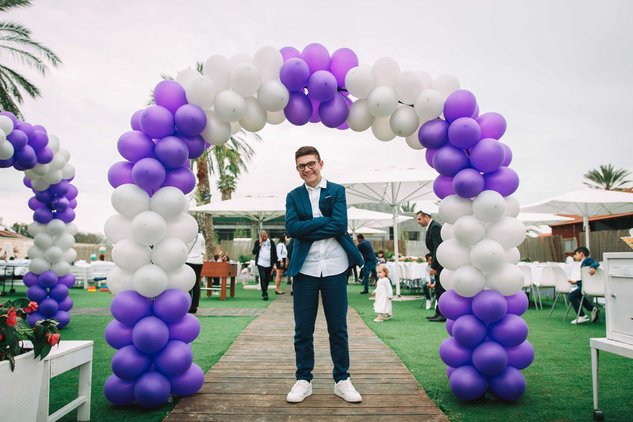 הימים חלפו לאט, סופר את השעות מתי היום המיוחד והמיוחל כבר יגיע. והינה הוא בא!!.הגענו למתחם האירועים מוקדם, ההורים הסבירו שזה הזמן שלנו להצטלם בנחת, צילומים מקדימים. אלו צילומים של המשפחה כולה וגם כולנו בייחד 2 המשפחות וכמובן צילומים של חתן-בר-המצווה. מה שהם לא הכינו אותנו זה להפתעה שהכינו לנו. כאשר הגענו למתחם קיבלנו את שוק חיינו- להפתעה כזו לא ציפינו. המקום מפוצץ בבלונים. לנוכח תדהמתנו ההורים חייכו- ידענו שתאהבו את זה, לא סיפרנו לכם כדי לא לקלקל את ההפתעה. על החבלים שמעל הבריכה ישנם בלונים בצבעי זהב, ירוק התלויים להם בגאווה, ההשתקפות שלהם במים נותנת תחושה שאני בתוך בריכת ריקודים. מה שהכי הדליק אותי זה שער מבלונים בכניסה. בלונים בצבעי סגול ולבן מחוברים להם יחדיו בצורת יו הפוכה, איזה מקום כפי לעמוד בו ולהצטלם. אם לא דיי בהפתעה הזו, ליד הבריכה המהממת גם ככה, סידרו שלט ענק מפרחים לבנים עם השם של החבר שלי, חתן הבר-מצווה. אבל אנחנו מי שאנחנו, עם כול הכבוד לבלונים זה לא עומד בתחרות ההתרגשות עם המכונית המדליקה. והצלם כמו קורא את המחשבות שלנו, אחריי שהוא מצלם את המקום, ואני המלא סקרנות הולך אחריו ורואה שהוא מצלם הכול ומכול מיני זוויות, הוא אפילו הרשה לי לעשות צילום אחד או שניים. ועכשיו למכונית- התור הראשון כמובן לחבר, חתן הר המצווה נעמד ליד המכונית ומצטלם. אני כבר עוזר צלם בר מצווה, מדריך אותו אילו פוזות לעשות: פעם הוא רציני ומהורהר, ופעם הוא שטותניק. חכו חכו שנראה את הצילומים האלו בבית-הספר, וואו!!!. אחריי הצילומים שלו וכמובן עם המשפחה שהצטרפה לצד המכונית, הגיע גם הזמן שלי. ואני לא נותן לרגע הזה ללכת לאיבוד, ממש משתגע מול המצלמה בפוזות ובצחוקים, איזה כיף זה שהצלם קולט את הראש שלי ופשוט זורק לי עוד רעיונות נהדרים למול המצלמה!!. אין מה לעשות, בעוד זה היום של החבר הכי טוב שלי, הוא חתן הבר-מצווה ואני החבר הכי טוב שלו, אנו עדיין כפופים להורים וזה היום המרגש גם שלהם. אני נפעם מהאושר של אמא שלי, היא מרגישה כאילו זה הבן שלה שיש לו אירוע. אנו נשמעים להם ומגיעים לעמדת שער הבלונים בשביל הצילומים המשפחתיים. הצלם הציע שנעשה גם צילומים ליד השלט הענק שעשוי מפרחים לבנים המציין את שמו של נער השמחה. אני פשוט נגררתי אחרי כולם אבל אז אמא הסבירה לי; אתה עוד ילד, אבל שתגדל תבין את החשיבות של צילומים משפחתיים שכאלו. כמה תענוג יהיה לך להראות זאת לנכדיך ולספר את הסיפור של היום הזה- סיפור לא רק של משפחה אלא סיפור חיבורן של 2 משפחות בשמחה אחת מאושרת- הסיפור שלכם על החברות הטובה… אמרתי תודה לאמא שנתנה לי רעיון חבל הזמן, אם זה ככה חשוב כמו שהיא אומרת, לספר את הסיפור שלנו בעתיד, אז למה שלא נשב כל החברים מבית הספר ליד השלט הזה? בעוד חן בר-המצווה עסוק בצילומי הסולו שלו, וקבלת האורחים שהתחילו להגיע, התחלתי לארגן את החברים למשימת צילום זו. בהתחלה היה קשה לשכנע, זה מתבייש וזה לא רוצה עכשיו וכך הלאה.. אך אני למדתי מאמא- שיש משהוא חשוב לך ובעל משמעות אז לא מוותרים!!. לאחר מסע שכנועים, הינה אנחנו ישובים ליד השלט של שמו של חתן בר-המצווה, זה לא שלט רגיל. זה שלט ע-נ-ק-י. ושמו עשוי מפרחים לבנים, את זה כבר הזכרתי. אנחנו יושבים שם ומאחורינו הבריכה, חתן בר-המצווה מגיע ויושב באמצע. בניגוד אליו שהתלבש ספורט אלגנט, אני התלבשתי פשוט ומשוחרר כמו שאני רגיל- מכנסי גינס ברמודה וחולצה יפה לבנה. ישבנו כולנו שם והצטלמנו. צלם הבר-מצווה היה גזעי, הוא הציע שכול אחד מאיתנו ממקומו שלו יצביע על החבר שלנו, חתן בר-המצווה, אני אוהב את הראש שלו- של הצלם