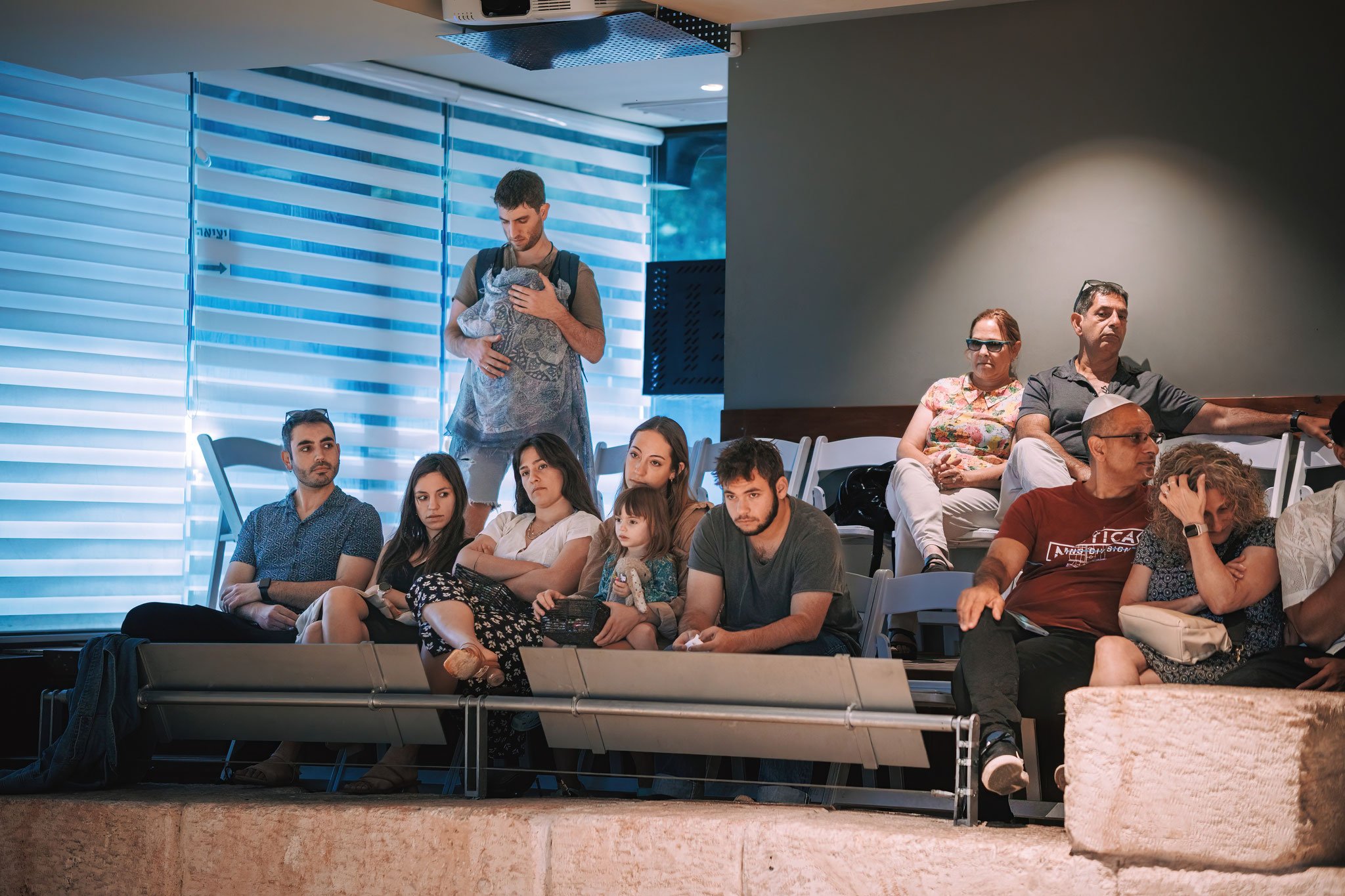 האווירה הכללית היא של רוגע ושלווה, עם תחושת ציפייה באוויר. האורחים מתחילים להתכונן נפשית לעלייה לתורה, החלק הכי משמעותי של היום. יש כאלה שמנקים את גרונם לקראת הברכות, אחרים מחפשים אחר החתן הצעיר כדי לתת לו עוד חיבוק ואיחול, כאילו שהוא יוכל לספוג כל כך הרבה אהבה ביום אחד
