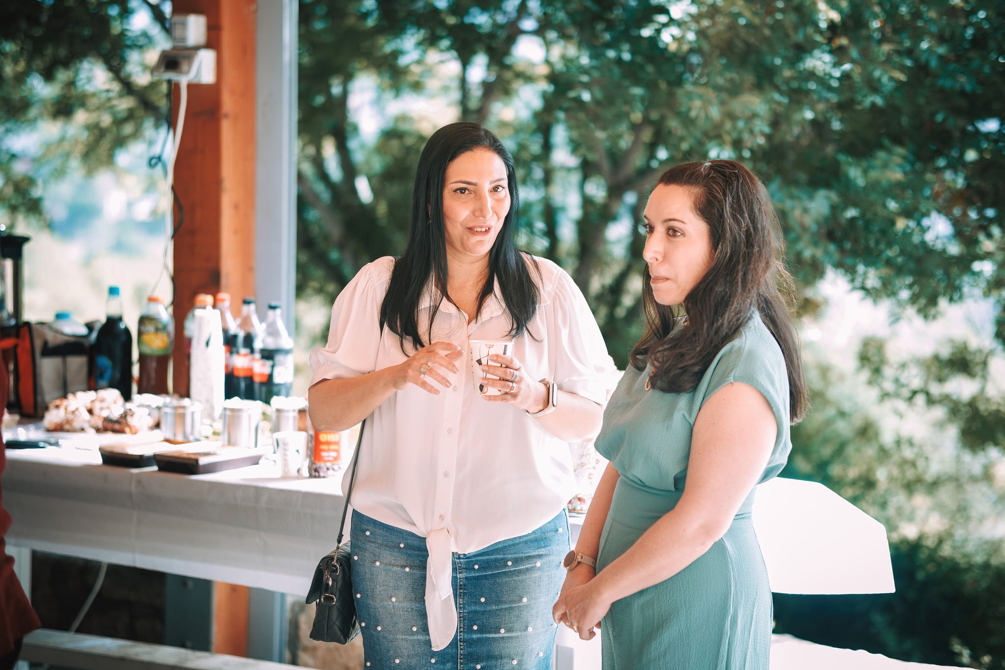 הנשים מגיעות ראשונות, מחויכות ומלאות באנרגיה חיובית. אחת מהן אפילו מצליחה להסתיר את הכרטיס ברכה בג'ינס שלה, כאילו הוא היה הסוד הכי גדול של היום. עוד כמה רגעים ואנחנו רואים חיבוקים חמים בין אמא לבין אורחות נוספות, שהן כמובן חלק מהמשפחה המורחבת