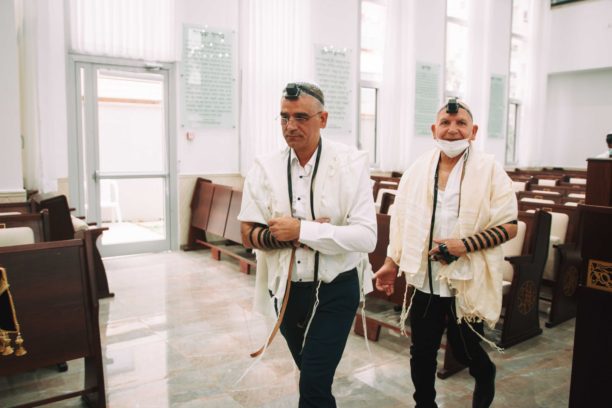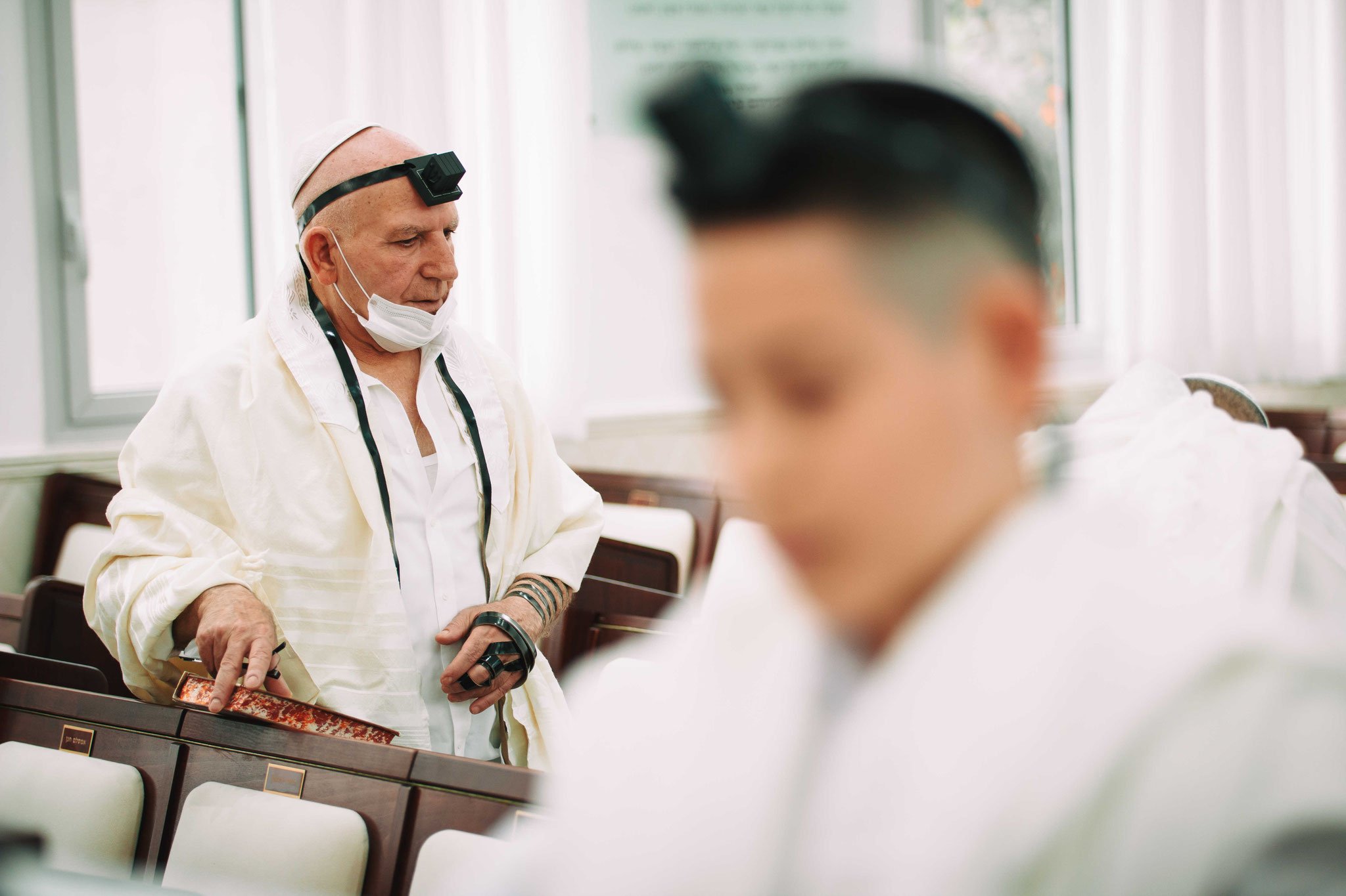 בצילום אני מתרכז בתנוחת הטלית ואיך מניחים את התפילין על היד. כל אחד עם עצמו ועם אלוקיו אך כולם בייחד עם אותו המעשה, אותה הכוונה. ושוב אי אפשר שלא להתפעל מבית הכנסת המרשים, הכול מצוחצח ומסודר למופת, הפאר וההדר של המקום – חוויה מחשמלת