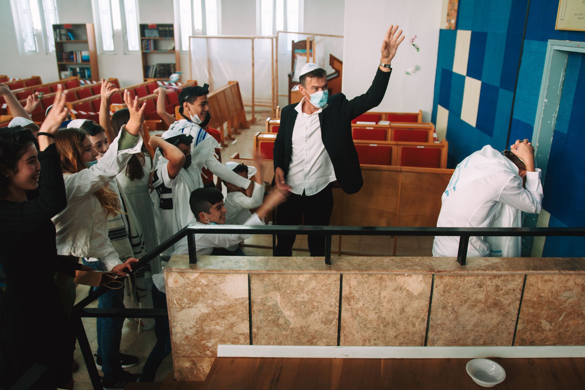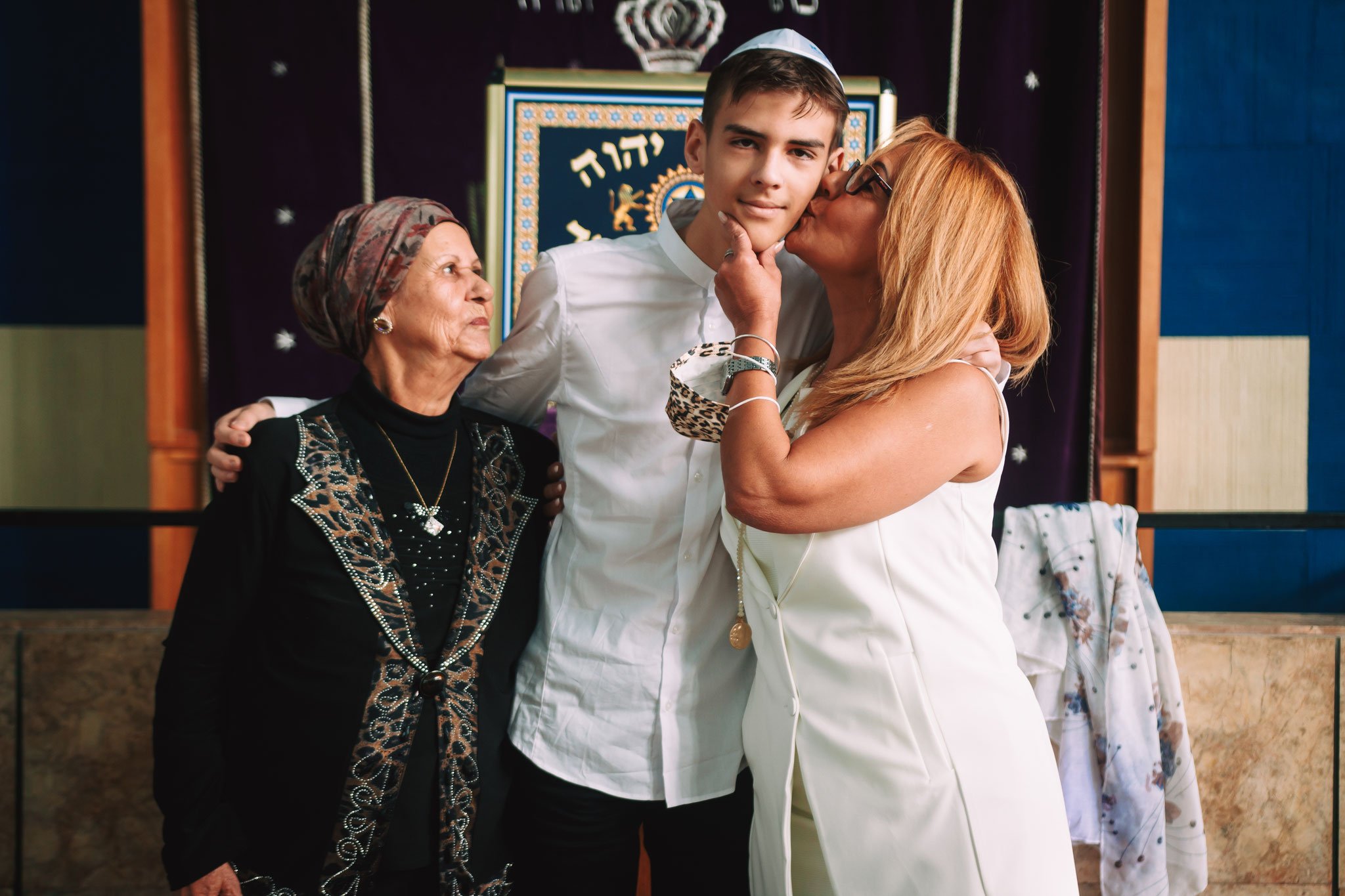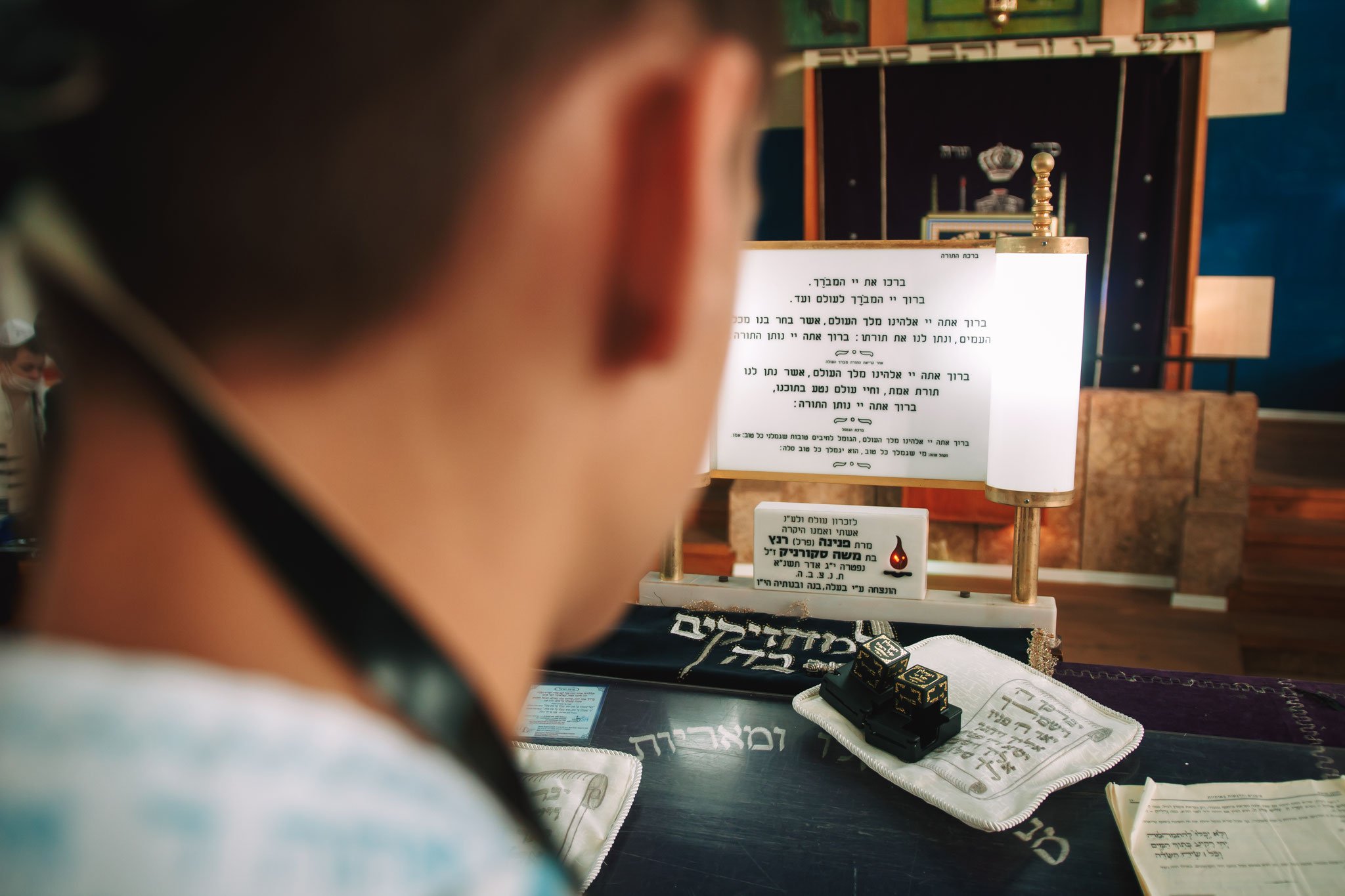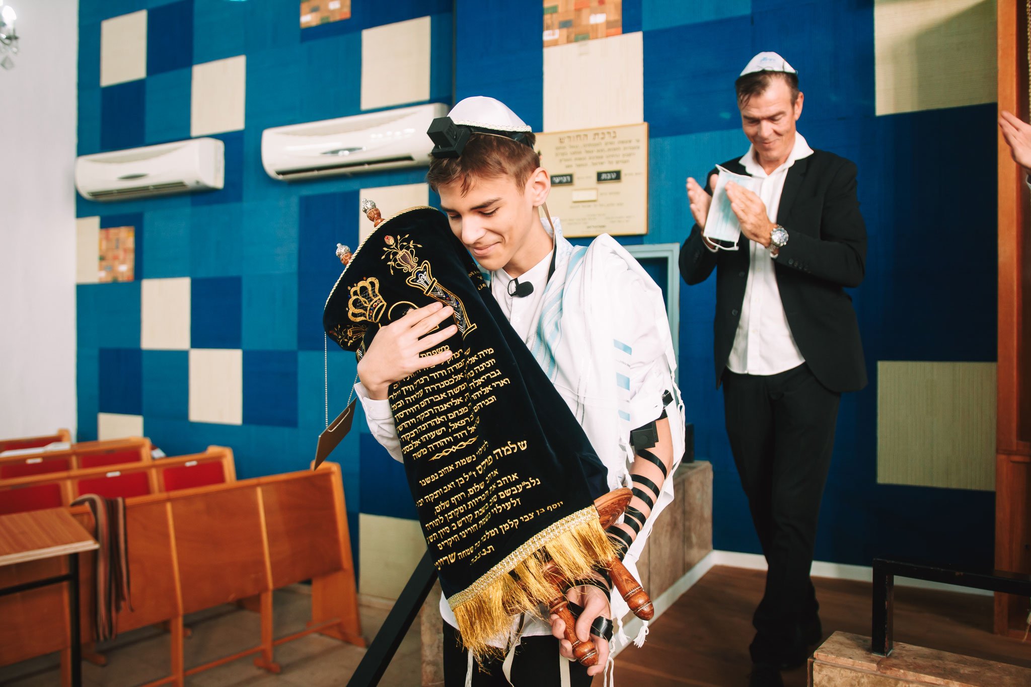 בבית הכנסת הגדול שבקרית אונו יצא לי כבר להיות כאן בתור צלם לעליה לתורה בעבר, בית כנסת הוא מקום נפוץ לחגיגות ובעיקר לצילום עלייה לתורה, והיה לי חשוב לאפיין את האירוע בהתאם למשפחה ולילד שחוגג את הגיעו לגיל המצוות. בכל פעם מחדש שאני מגיע לבית הכנסת אני מוקסם ומגלה את הצבעים שלו מחדש. בית הכנסת מעוצב כך שהכיסאות מרופדים בכריות אדומות, בית הכנסת מכיל מנורות מפוארות בקריסטלים, הארון בו שמור ספר התורה מכוסה בבד סגול, כשמעליו לוחות הברית צבועים בירוק והקיר על ידיהם משובץ בצבעים: כחול, תכלת ולבן. ברגע שהנער לבוש בטלית לבנה ועומד אל מול לוחות הברית נוצר מגוון צבעים והנער עדיין בפוקוס, התיעוד הופך למעניין יותר והתמונות למיוחדות יותר. אני דואג לתעד את כל שלבי העלייה לתורה כשיש דגש גם בפרטים הקטנים שלא תמיד זוכרים לתעד באירוע: ערכת התפילין, הנחת התפילין, צילום מקרוב של נער בר המצווה בעת הקריאה בתורה, צילום הטלית, והוצאת ספר התורה מן ההיכל גם בסטילס וגם בווידאו