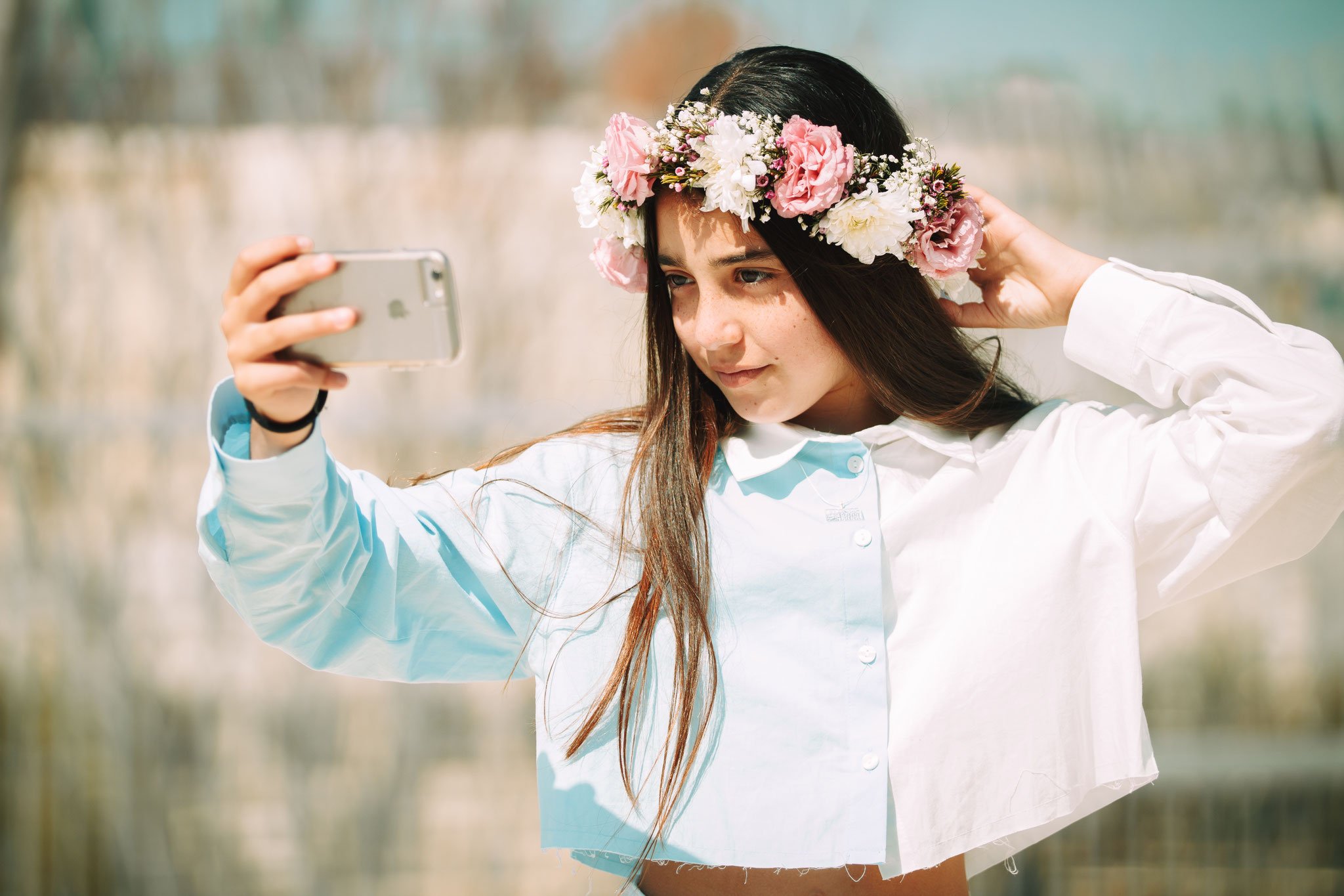 עם יראת הכבוד כמו גם יראת השמיים אשר לה, ניצבת הנערה ליד אבני הכותל הקדוש. ביראה וברעדה מניחה היא את ידה על האבנים, ובידה השנייה אוחזת בצמח עם שורשיו. זה זמן ההתייחדות שלה להתייחד עם פנימיותה, עם מורשתה, עם יראת השמיים אשר לה, מבקשת היא על עצמה ועל הכלל. ואני מצלם מזווית, תופס רגע מכונן זה, ככה זה להיות צלם לבת מצווה, כל רגע בפוקוס. זה לא רק זמן מיוחד בשל שמחתה, אלא זמן מיוחד- זמן של קורונה. בזמן כזה של משבר לאומי ואף עולמי, אנו נשענים על אמונתנו והכותל, שורש האמונה היהודית- נצחיות העם ועמידתו האיתנה בגלות ועדיין נשאר שלם והבית היהודי והדרך ממשיכה