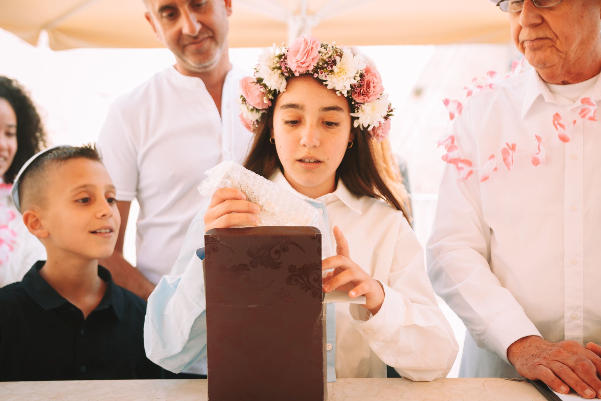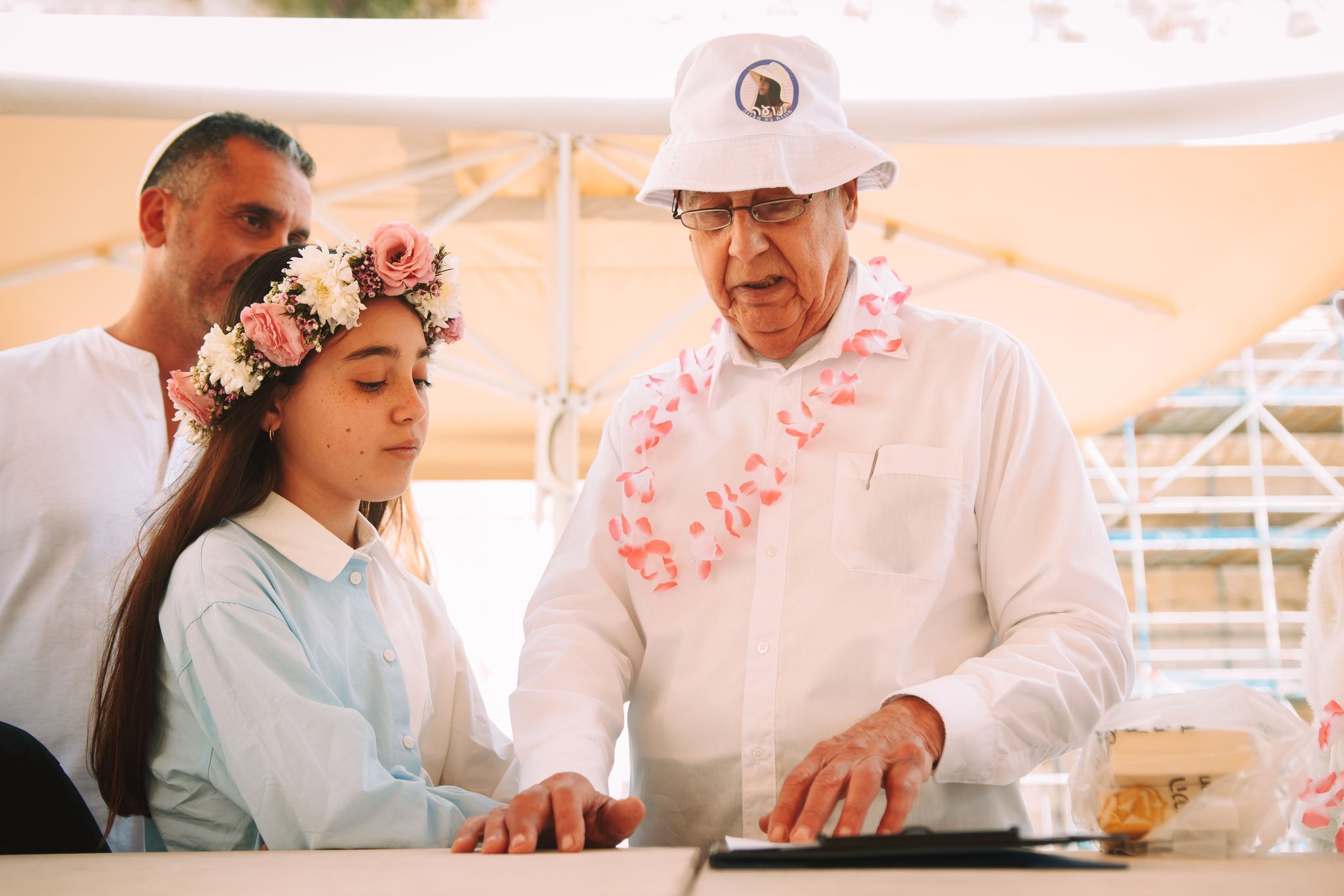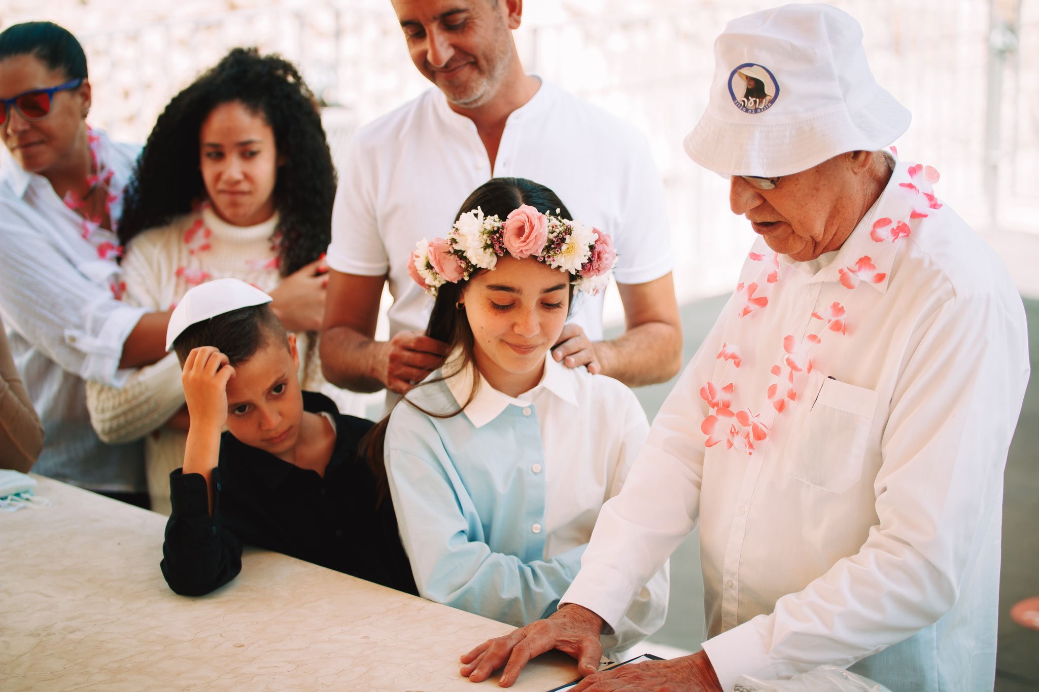 ממשיכים בסיור ואני מצלם תמונות שונות מזוויות שונות. תמונות שמעבירות את התחושה של צעידה בשבילי ההיסטוריה, תחושה של בייחד וחיבור למורשת, אך רואים על פניהם את ההתרגשות לקראת הבאות – זה רק הפתיח. אחת התמונות בחלקו של הרובע המוסלמי בסיור, אני מתמקד בסבא. לבוש בלבן ושרשרת פרחים על צווארו והכובע, עם הבעה רצינית על פניו. הסבא מעביר את הלפיד לדורות הבאים. זה לא רק אירוע לחגוג לבעלת השמחה בת מצווה, אלא זה הקניית הדרך, המסורת – דרכו של סבא