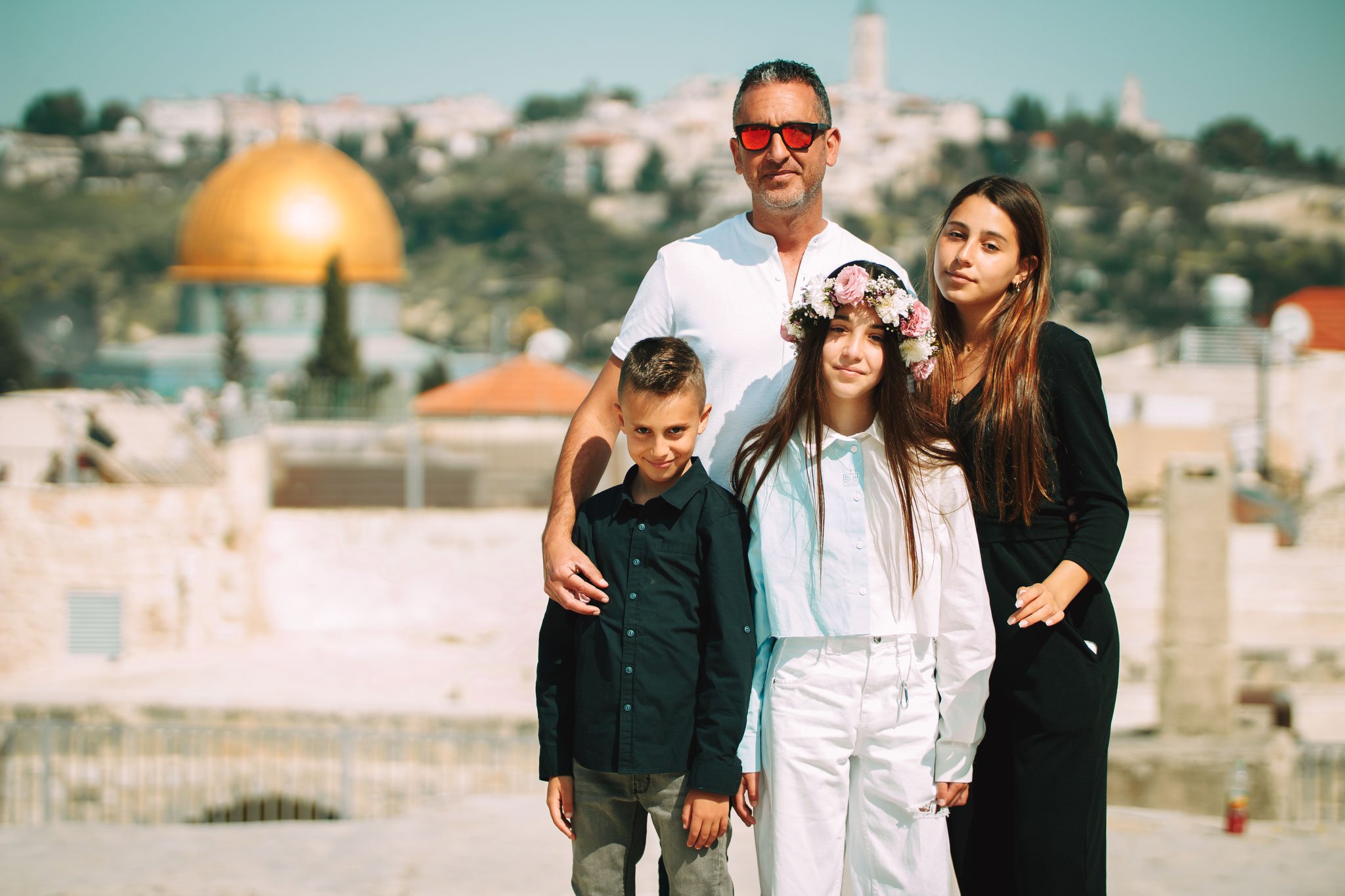 על רקע זה של כיפת הזהב, הצבתי גם את האבא עם הילדים שנערת השמחה באמצע, בין אחותה לאחיה והאבא מאחור. ההתמקדות בהם ברקע הרובע אך הוא מטושטש להקנות לזה אווירה נוסטלגית