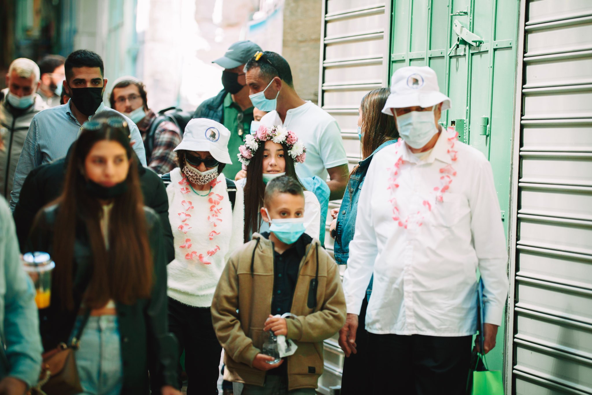 יצאנו לדרך, נערת השמחה עם זר פרחים על ראשה כיאה לנסיכות אוחזת בידו של אבא והסיור בשער יפו מתחיל. איזו תמונה מרגשת שמאחוריהם המשפחה והאורחים ושני אלו מתווים את הדרך. הסיור בחסות הקורונה, למראת שהמסכות על הפנים, קל לראות את ההתרגשות על פני כולם. זה לא רק חיבור לנערת בת-המצווה זה חיבור למורשת ולשורשים. התמקדתי בתמונה מרחוק. שהם עצרו, עומדים ומחכים, המסכות על פניהם. תמונת ניצחון. אנו פה למראת הכול ובייחד, מחוברים אחד עם השני