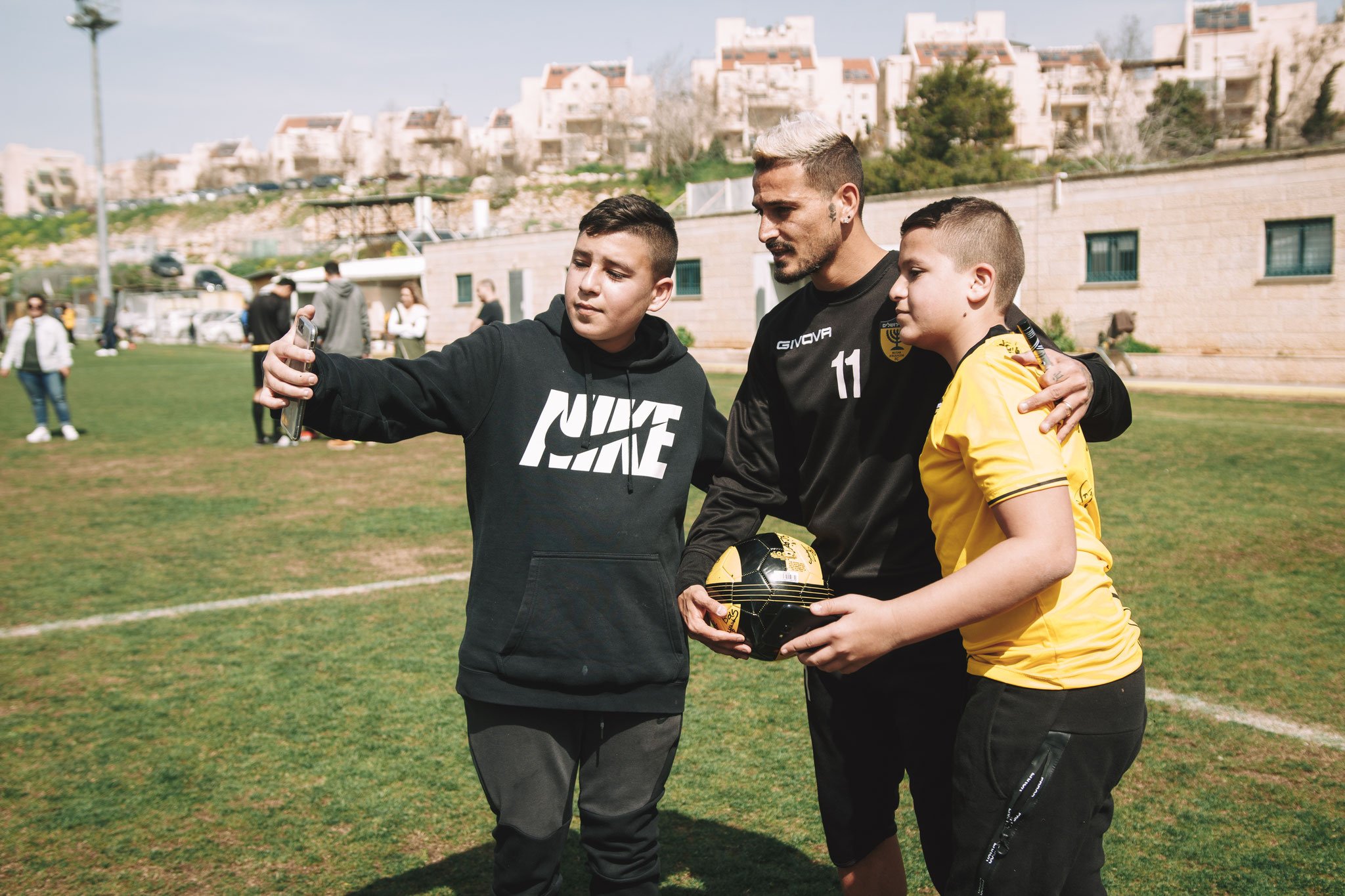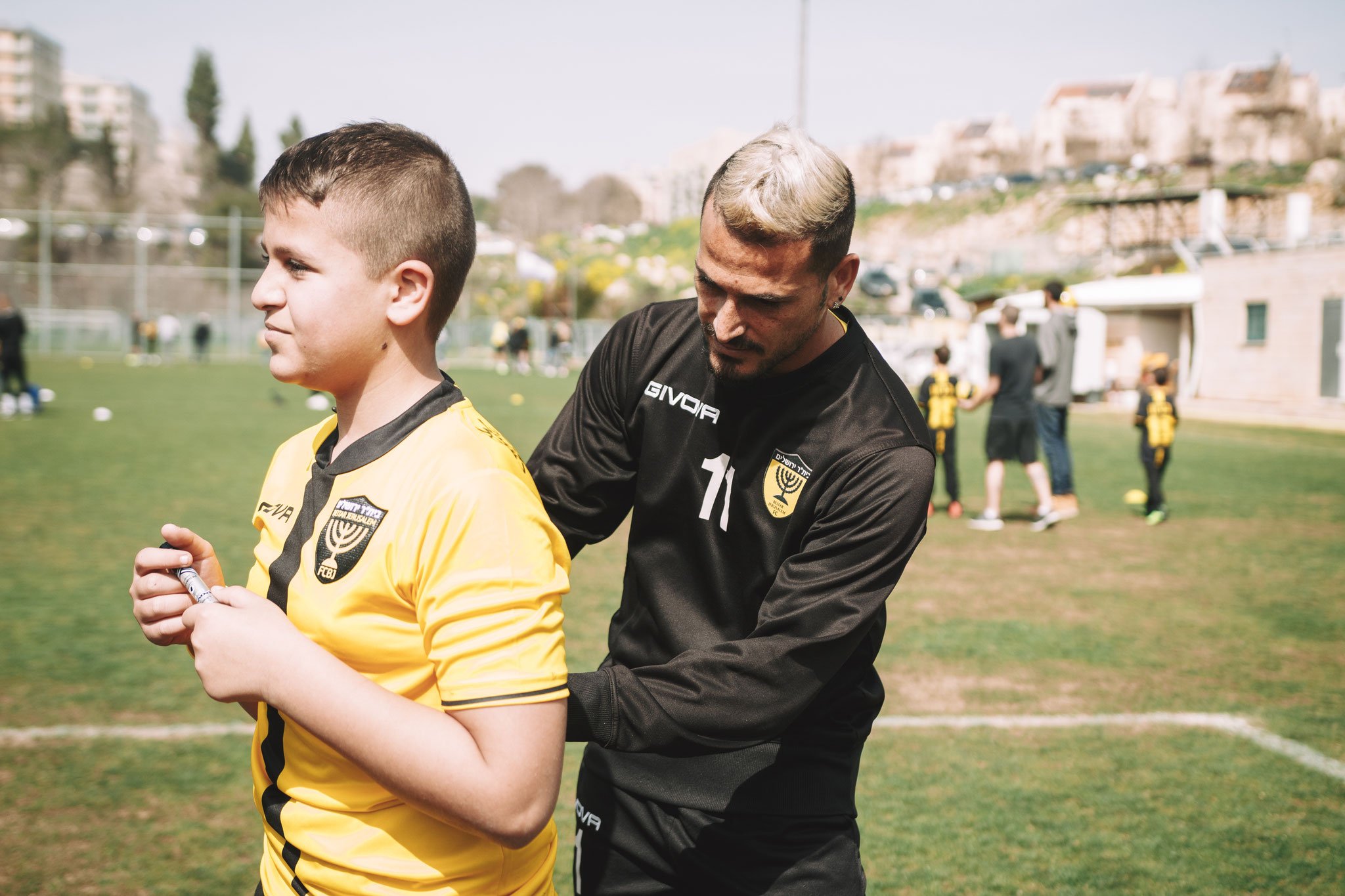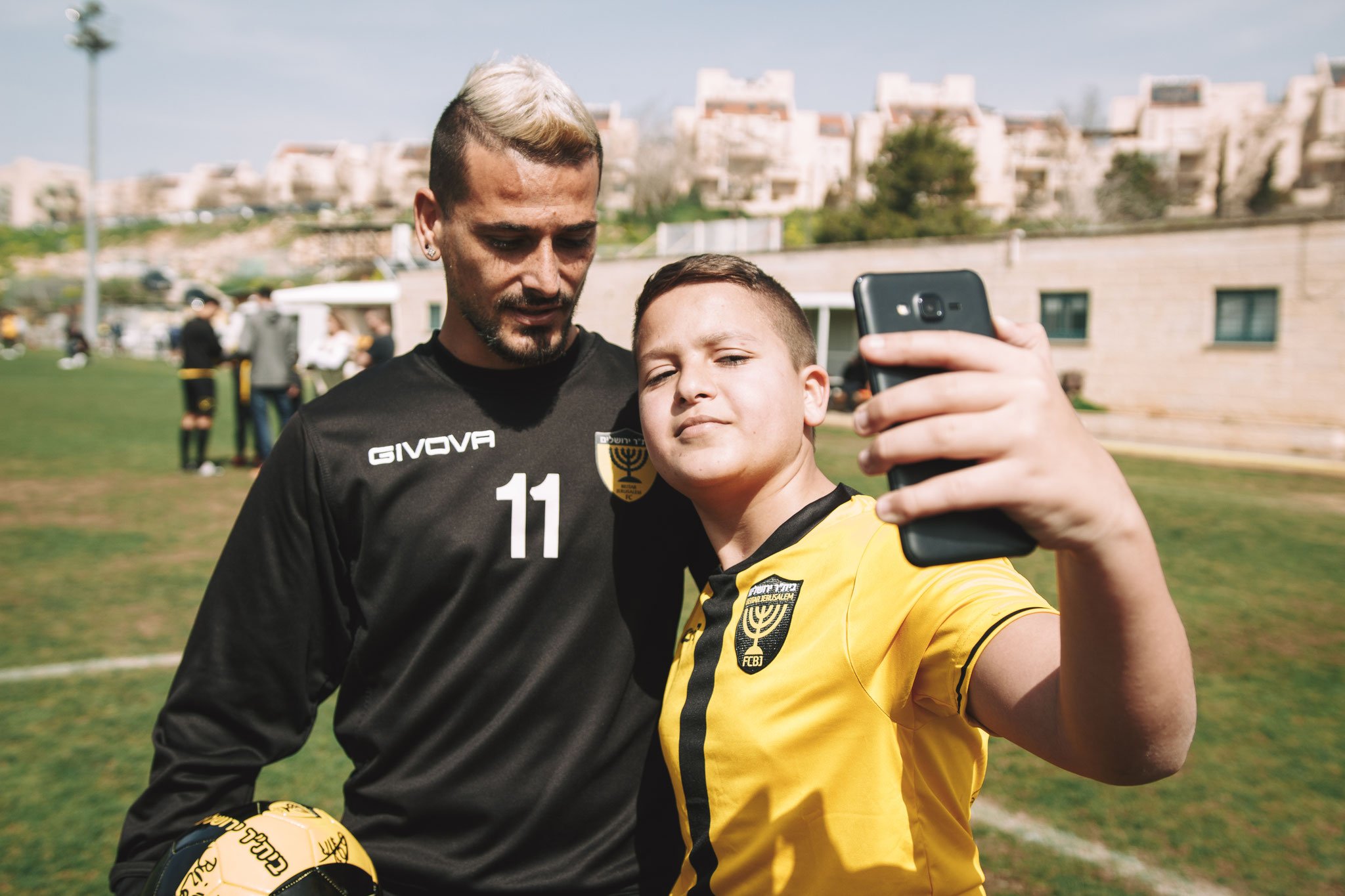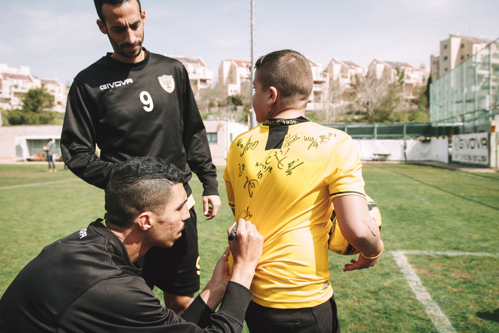 היום המרגש הגיע ובני אהובי, שכאילו רק אתמול הנקתי אותו ואחזתי לראשונה בידיי, כבר מוכן ומזומן שהוא לבוש בחולצה של בית"ר ירושלים. הוא אפילו מביא עימו את הכדור שלו, כדור רשמי של הקבוצה עם הלוגו שלה. במאמר מוסגר שם הופתענו וקיבלנו מתנה נהדרת נוספת שחקני הקבוצה חותמים על הכדורגל שלו ואפילו על החולצה שלו