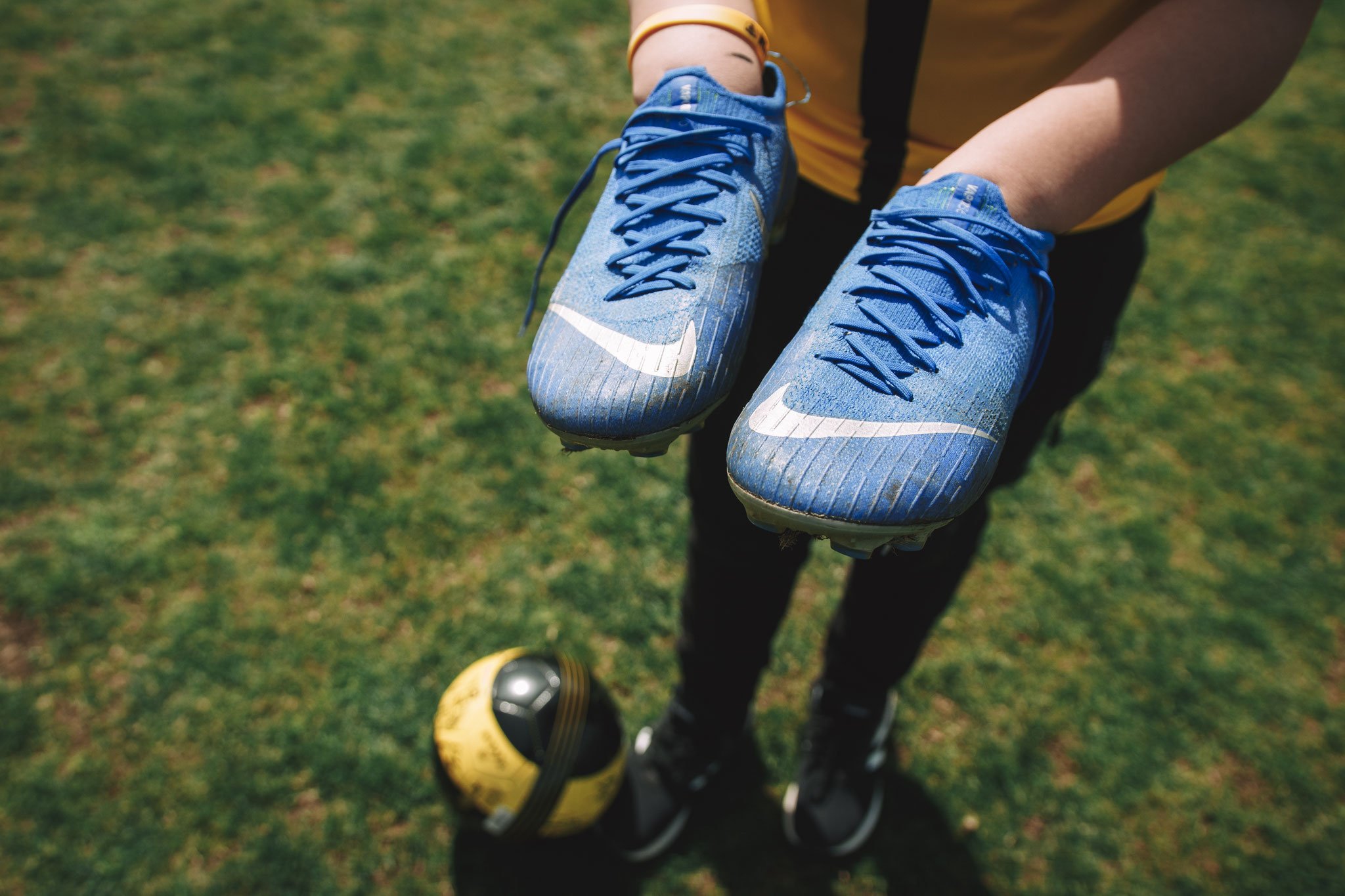 הגענו אל מגרש הכדורגל הצלם מצלם את המגרש, וכבמאי מנחה את בני איך לעמוד, אילו פוזות לעשות: לבד או עם הכדור. הצלם אפילו ביקש ממנו שיחזיק את נעליי הכדורגל בידיים על מנת לצלמם בפוקוס. צילומים כאלו שהצלם נתפס לפריט מסוים, מעוררים אצלנו את הדמיון האסוציאטיבי ובכך מתעצמת לנו חווית הזיכרון מהיום המרגש