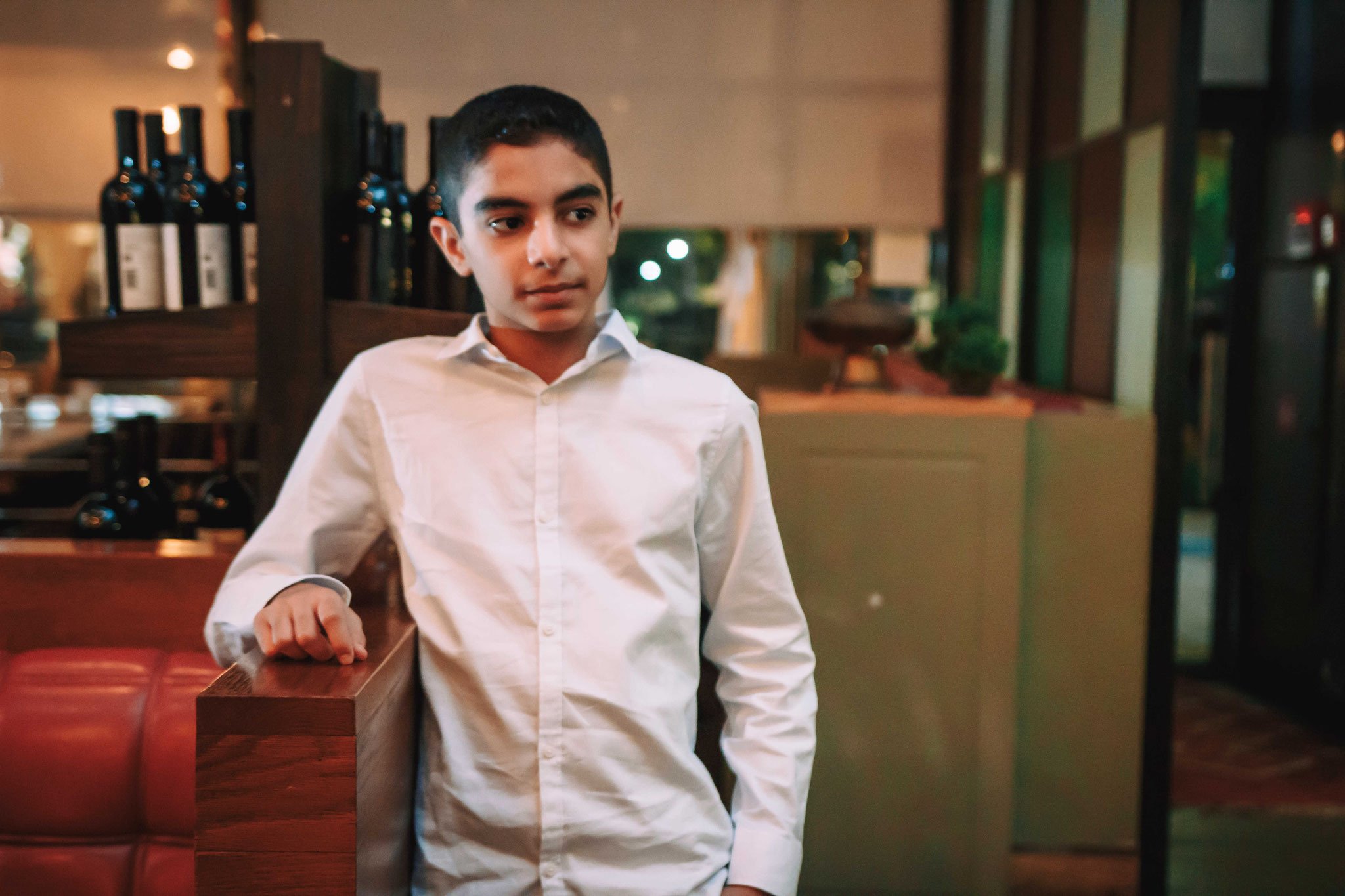 הפלאש השני היה מעל האולם בקומה השניה שמיועדת יותר לנוי, מרפסת לרוחב המקום עם ארון יינות ענק, אז פשוט הנחתי אותו על המרפסת שיאיר את כל השטח של המסעדה מלמעלה