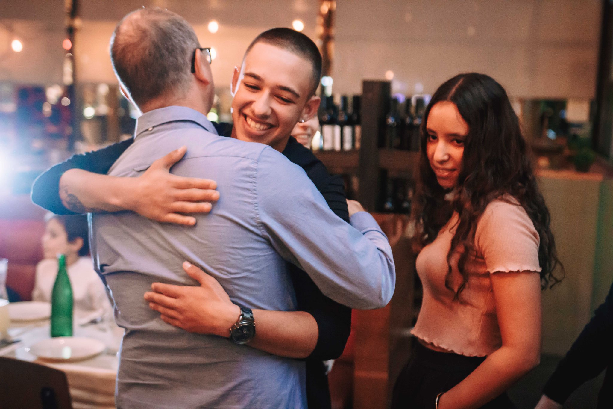 בסוף תמיד עושים צילומי משפחה ואורחים וכאן הייתה קצת בעיה כי, עם כל החלל הזה בפועל אין מקום לתמונה שמורכבת מ6 אנשים ומעלה, זו באמת בעיה כי הכל די צמוד, שולחנות, כסאות, מעברים, עמדות וכה, אז יש צורך באלתור וגם וויתור, ויתור על תמונה נקיה ללא שום פרטים חיצוניים, כמובן, זה מסעדה ואולם אירועים אך כן עושים אירועים ומקום לתמונות קבוצתיות חסר