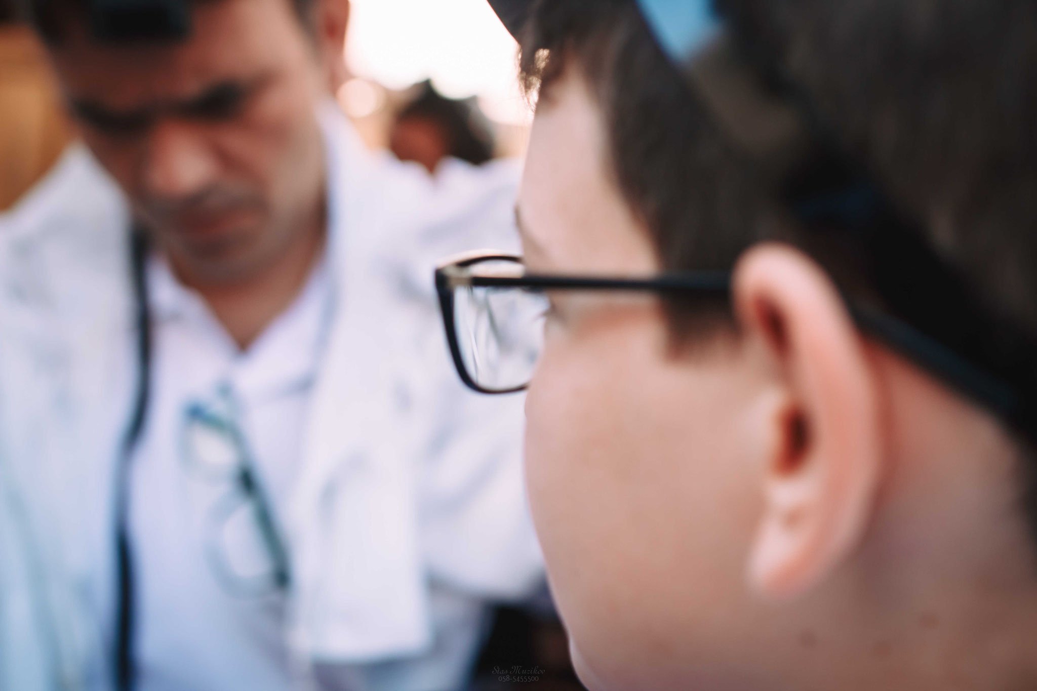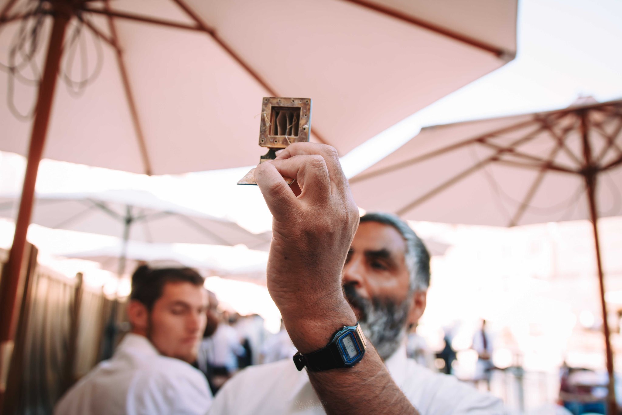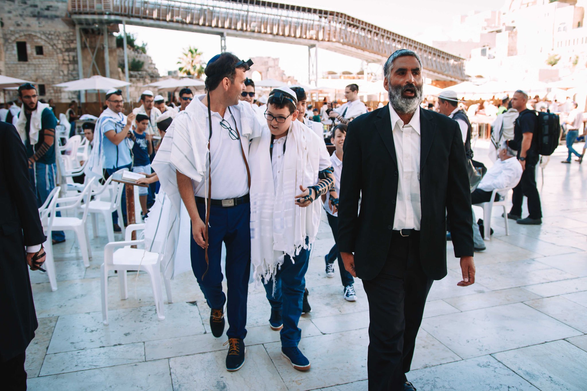 האוויר ירושלים, האווירה מקודשת, בסמוך לכותל המערבי, אותם אבנים המחברות את כלל העם היהודי מכול התפוצות. טקס בר מצווה בכותל מהווה חיבור ואבן דרך גם כן בין המשפחה בכללותה והאורחים, שחלקם לא ראו זמן מה. אנשים משני צידי המשפחות מתערבבים זה בזה, מתחברים זה לזה. אני תופס את אחד הרגעים האלו, בו משפחה עם עגלת תינוק מגיעה ומתוודעת לשאר