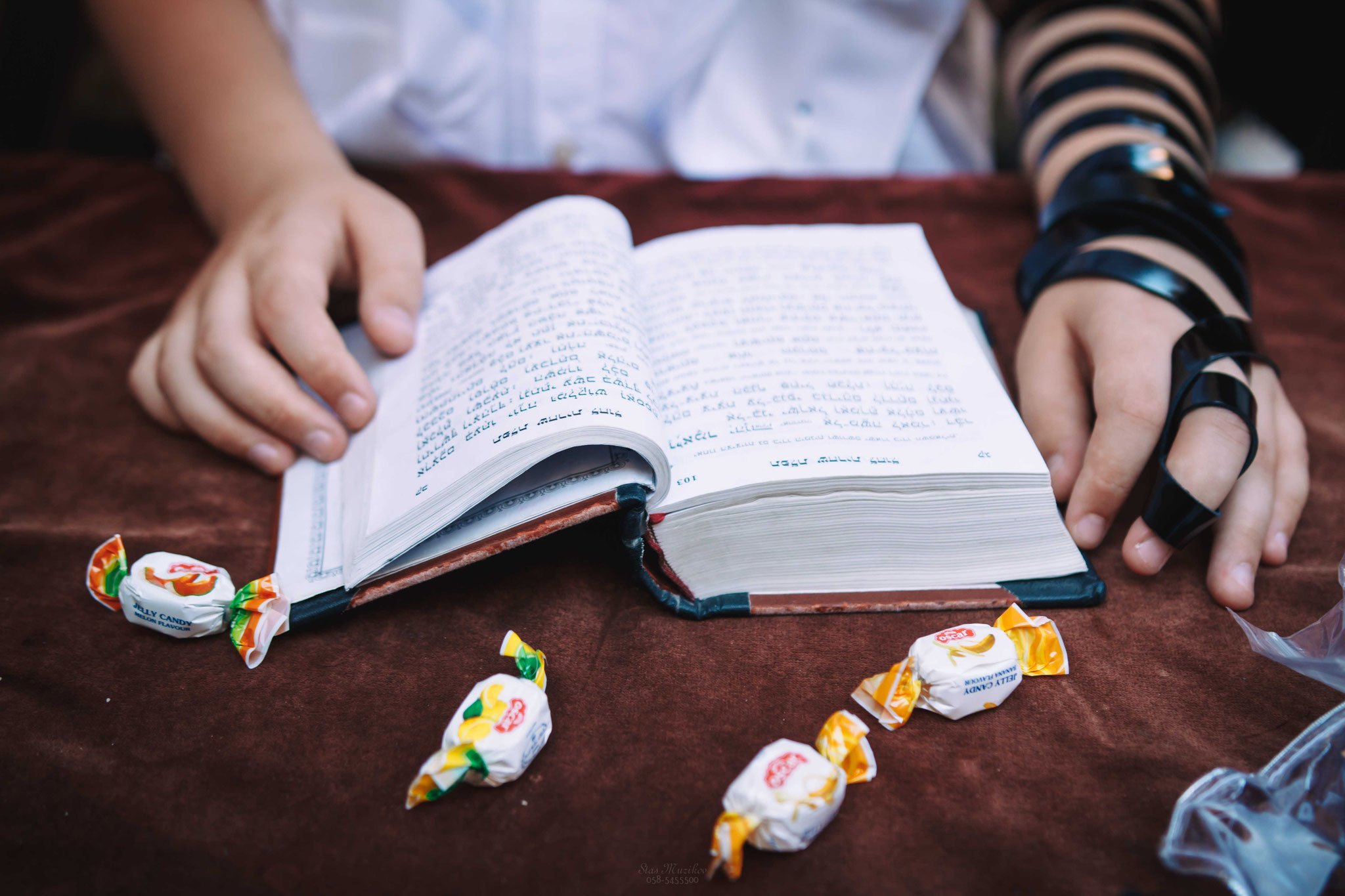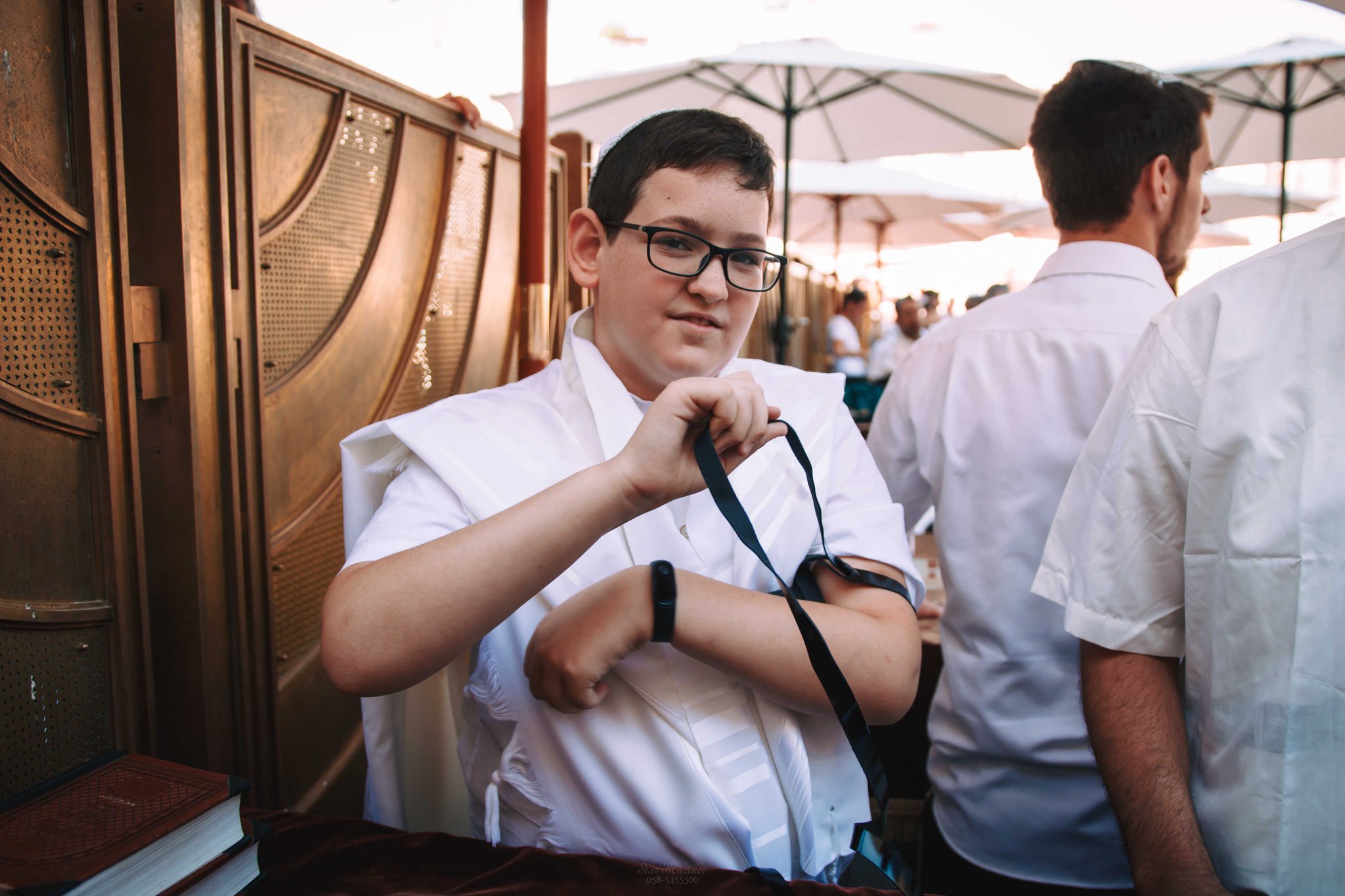 הנער, ביראת כבוד מקודשת אשר טליתו על ראשו בנוסף לתפילין נקרא לעלות ולקרוא בספר. כל לימודו הקריאה בתורה אשר שקד ועמל והשקיע מזמנו, זה הזמן שלהם לבוא לידי מימוש. זה הנער בריכוז מופתי, הוא מול הספר הקדוש הפתוח לרווחה. התמקדתי בפוקוס בצילומי במבטו של הנער, בריכוז הזה, הספר ככה בהצללה כזו. מבטו ועיניו המנצנצות מאושר של הנער זה העיקר פה. לספר הקדוש גם נתתי את מקומו הראוי; צילום המשך מהצד, זום עליו- על 12 סמלי השבטים אשר מהווים את התהוות העם, הנער הפעם ברקע מרחוק