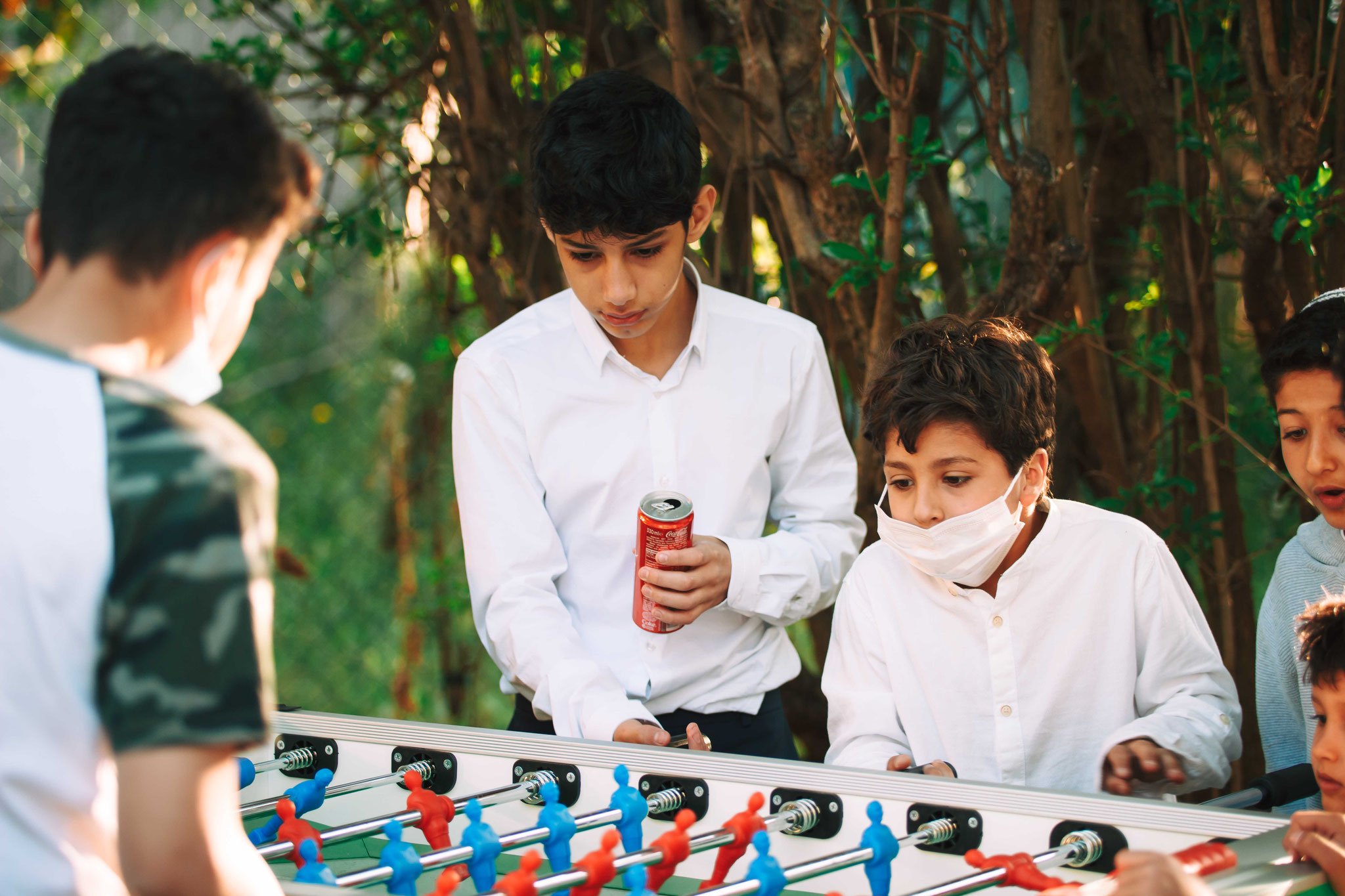 בכל צד. השמחה של כולם, האווירה משוחררת. יש מוסיקה וריקודים. אוכל בשפע, המון בשר. ישנה עמדת כדורגל שולחן לילדים לשחק