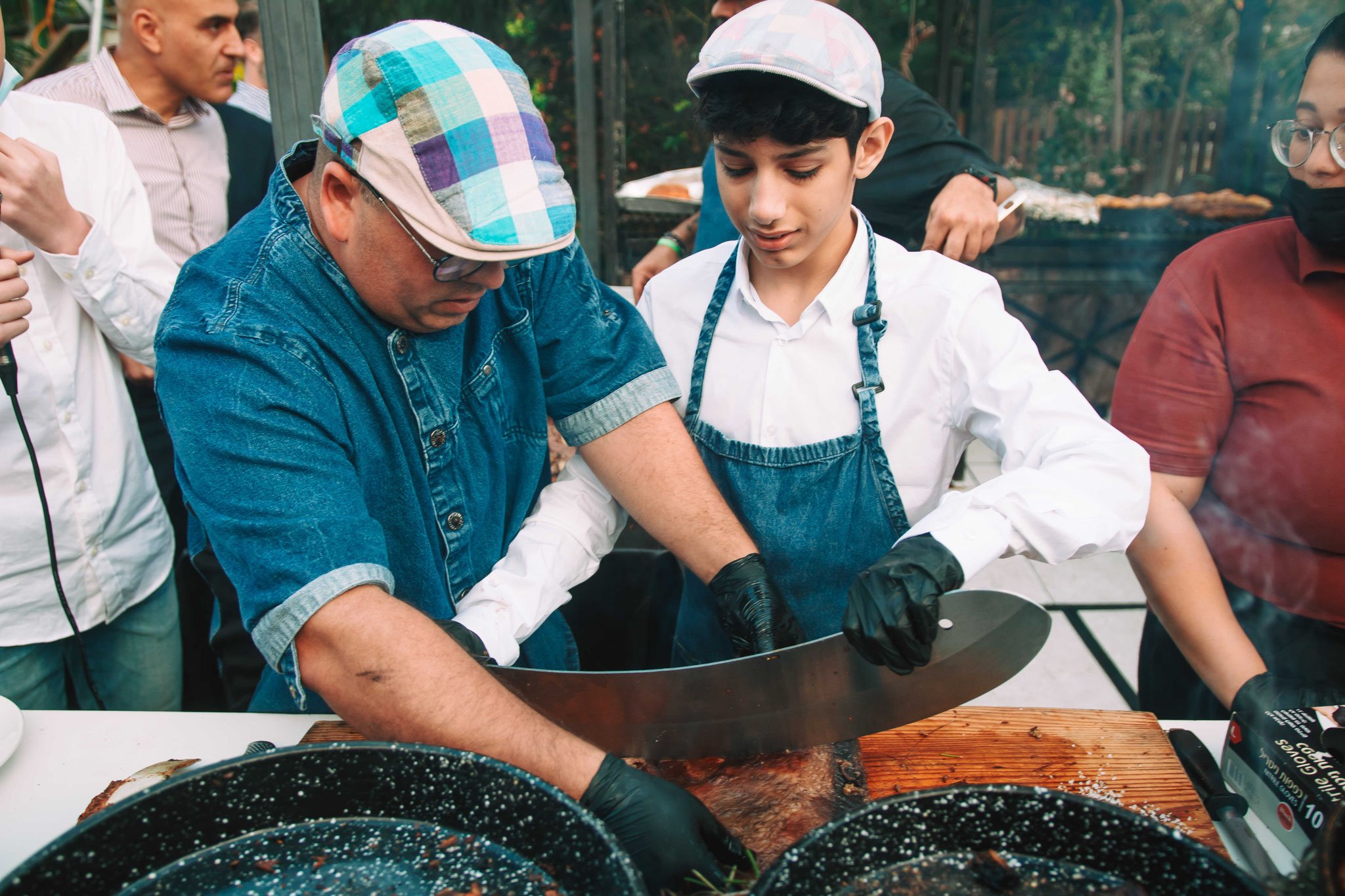 גולת הכותרת. הלבישו את חתן בר-המצווה במדי שף והוא החל לחתוך את הבשר בעזרת סכין קצבים מיוחדת, גבר אמיתי הוא נהיה הפעם אוחז בנשק