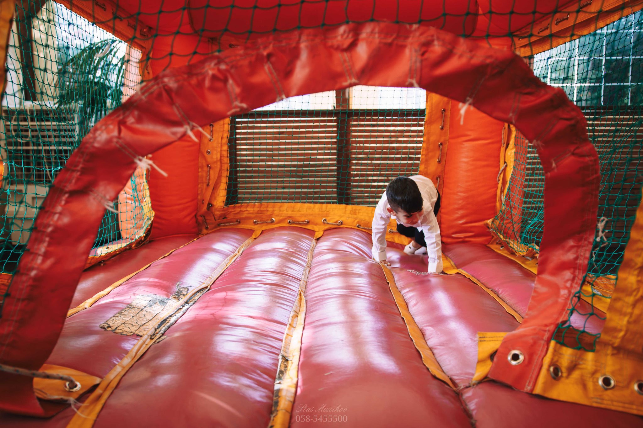 אחרי הטקס, המשכנו לסעודה עצמה בה האורחים כבר מדברים אחד עם השני, מתראים אחרי הרבה זמן שלא, אוכלים ונהנים ובעיקר משתתפים בשמחת ההורים הטריים, במקרה הזאת לא מדובר בילד ראשון אך עדיין השמחה מרובה. וכנראה מתוך ניסיון ההורים, הוזמנו גם מתנפחים לאירוע בו יכלו הילדים לנצל את זמנם יחד, ובהמשך שיחקו עם בובות של גיבורי על או הפריכו בלונים לאוויר ובכלל התנהגו כמו שילדים מתנהגים באירועים כחלק סמלי מן האירוע