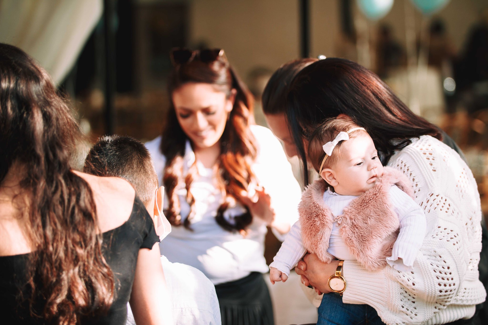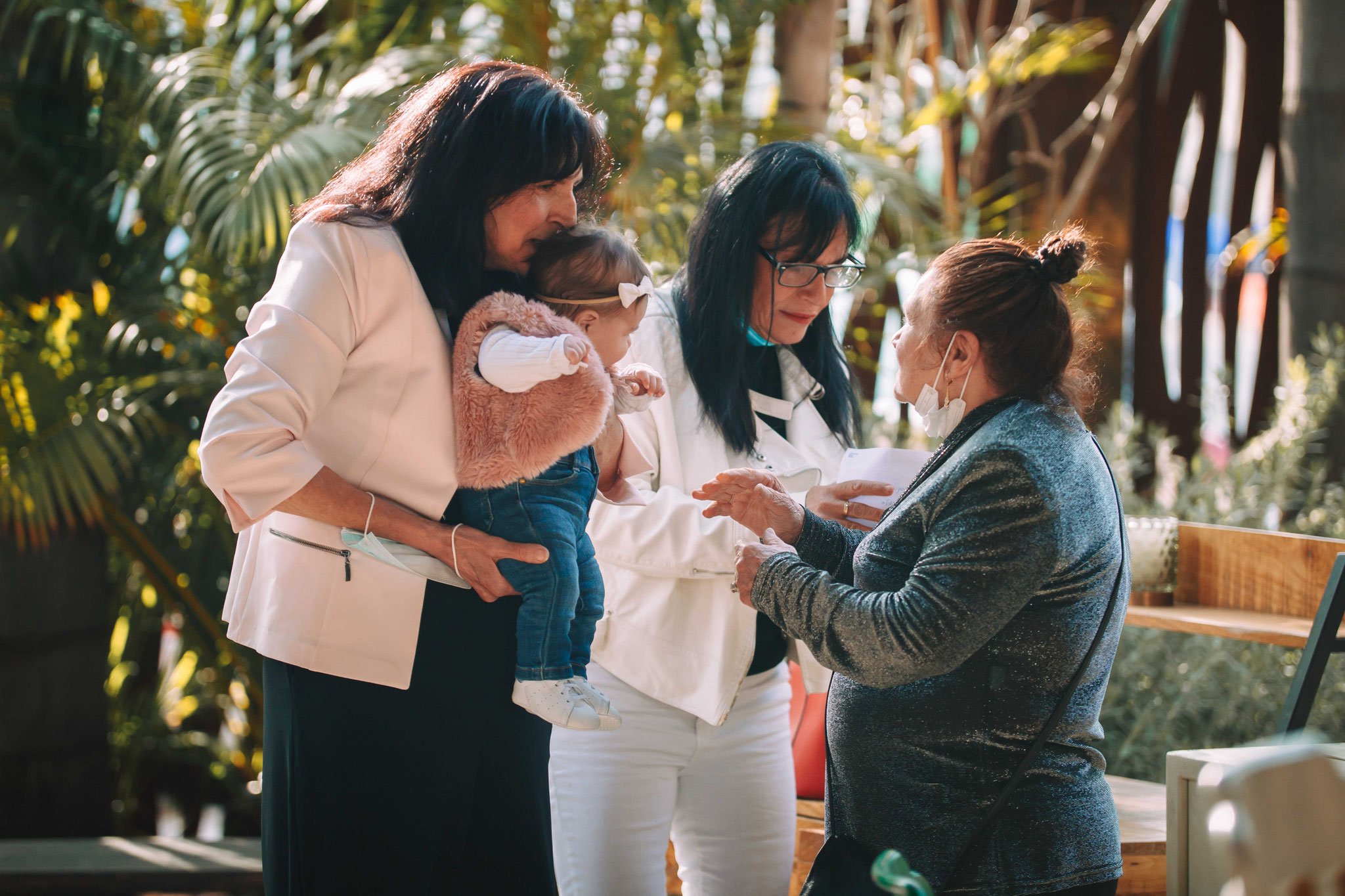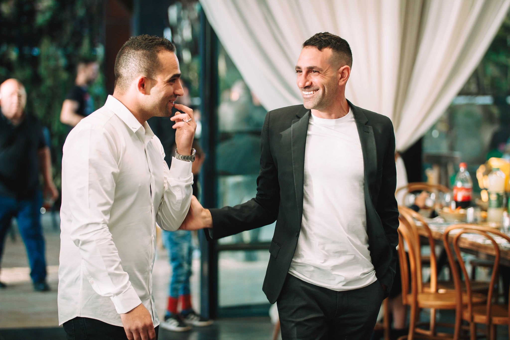 האווירה היא של בייחד, התרגשות מסוג אחר- המשפחה והאורחים לא ראו זה את זה זמן רב בשל הקורונה והסגרים שהיו. האורחים, המשפחה, מתוודעים מחדש זה לזה מחדש, מחליפים רשמים וחוויות, מתעניינים בשלומו של האחר. עם המסכות ככה מתחת לסנטר וחלקם עם מסיכות על הפנים, מתחבקים הם. הילדים מתכנסים במעגל ומתחבקים אחד עם השני, וכל זה במקום המהמם הזה, עם הבלונים והצמחייה המהממת שברקע. שימו לב לשער הבלונים המהמם, איך אפשר שלא להתרשם ממנו?, בכדי להמחיש את עוצמתו באתי בהיפוך ואחר כך ישר בצילום כאילו אני נכנס ועובר דרך השער, וזה בצמוד לאורחים הממשיכים להתוודע זה לזה וחלק עוד ממשיך להגיע