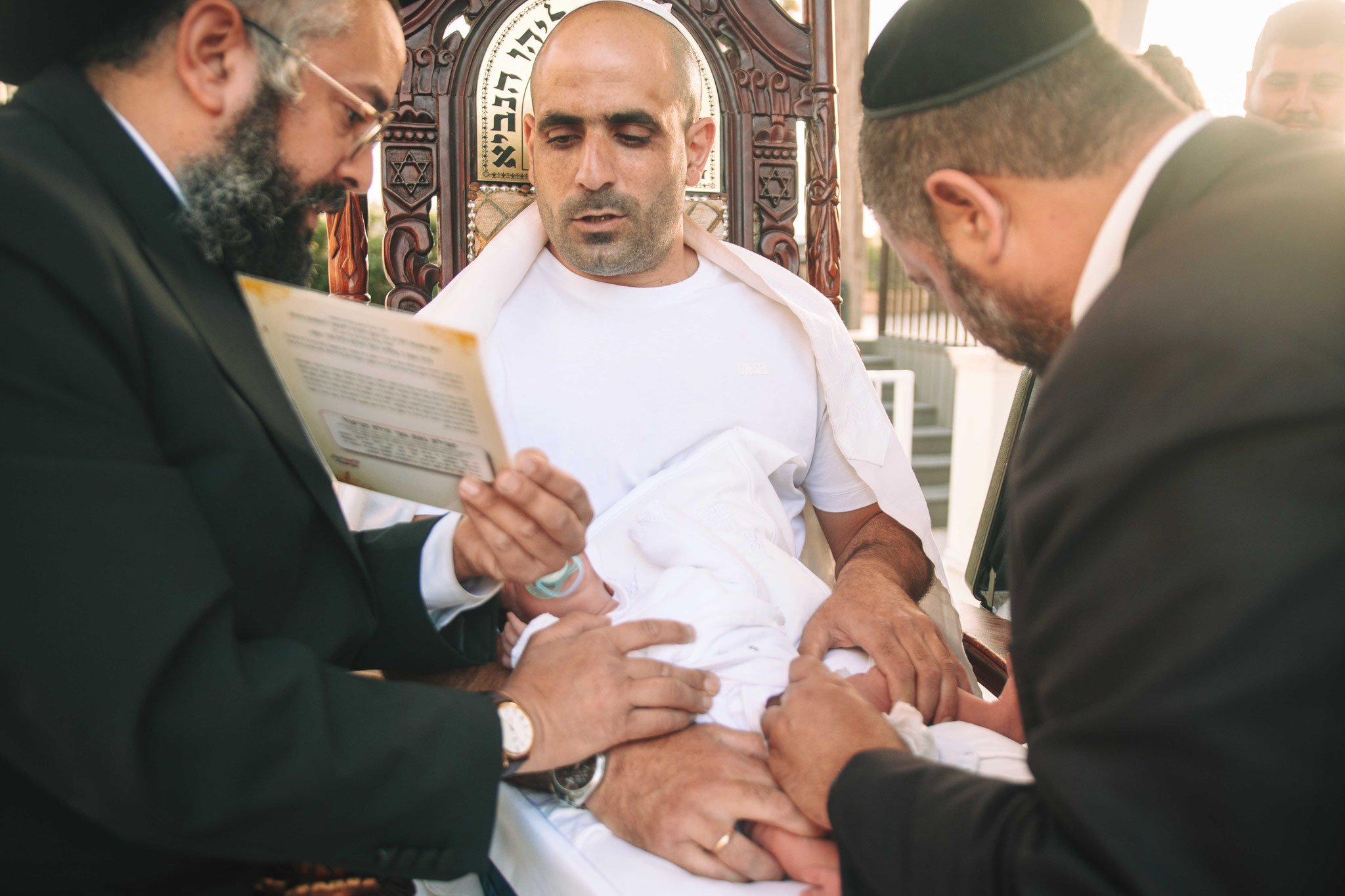האבא מתחיל להתעטף בטליתו וההתרגשות בשיאה. זה הזמן שכולם חיכו לו ובשבילו באו. בנקודה זו חשוב לי לציין בשל הרגישות של האירוע למתבוננים, בצילומי הטקס עצמו אני תמיד מצלם בצורה מעודנת את מלאכתו של המוהל