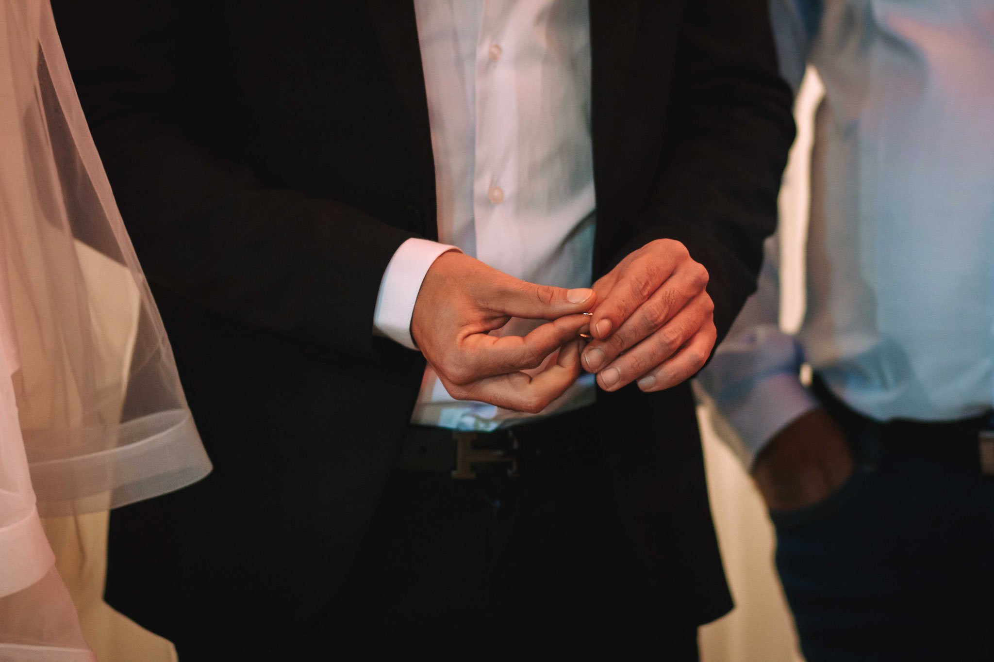 החתונה עצמה התרחשה בבית כנסת בראשון לציון. התמקדתי בצילום הכתובה, הטבעות, הליכת הכלה עם המשפחה בחצר, וכניסת החתן והכלה אל עבר החופה כשהכלה מכוסה בהינומה, תוך כדי קריאת הרב את הכתובה והעברתה לאם הכלה. את סרטון החתונה ערכתי בהתאם, כיאה לחתונה מהאגדות הביאו אורות מתחלפים לחתונה שתרמו לקסם שלה ולצילומים בחדר העריכות כמעט ללא מגע בצבעים שלהם. כל הריקודים, קבלת הפנים, וצילומי המשפחה נערכו בבית הכנסת בראשון לציון בו נערכה החתונה. היה לי חשוב גם לתעד את הריקודים במצלמה, ובעיקר להתמקד ברגעים של שבירת הכוס מתחת לחופה, שתיית כוס היין, הברכות של הרב, הריקודים של החברות של הכלה עם הכלה, הריקודים של החתן עם החברים שלו, רגעי השמחה והצחוק, ובעיקר- ההתרגשות