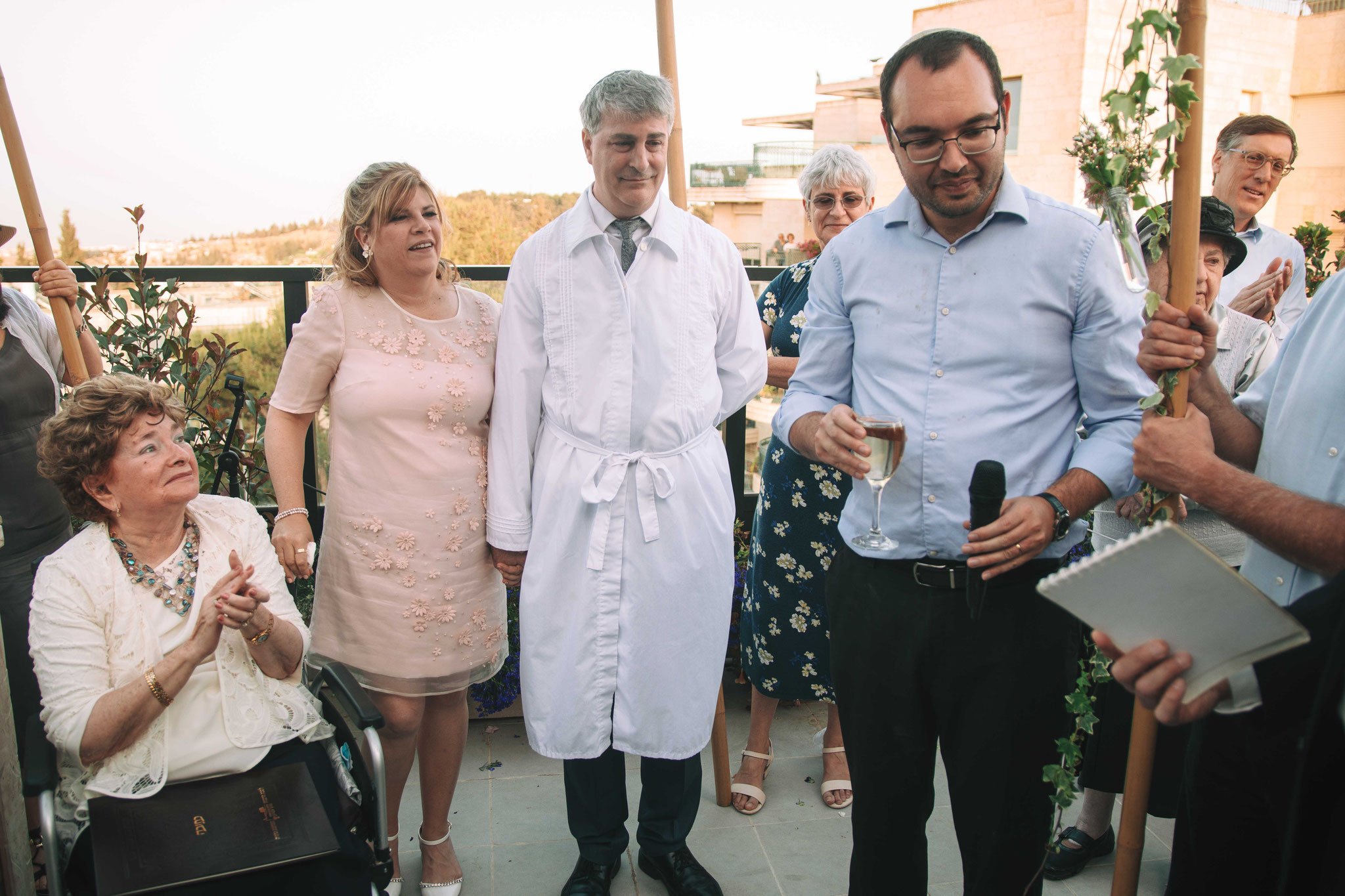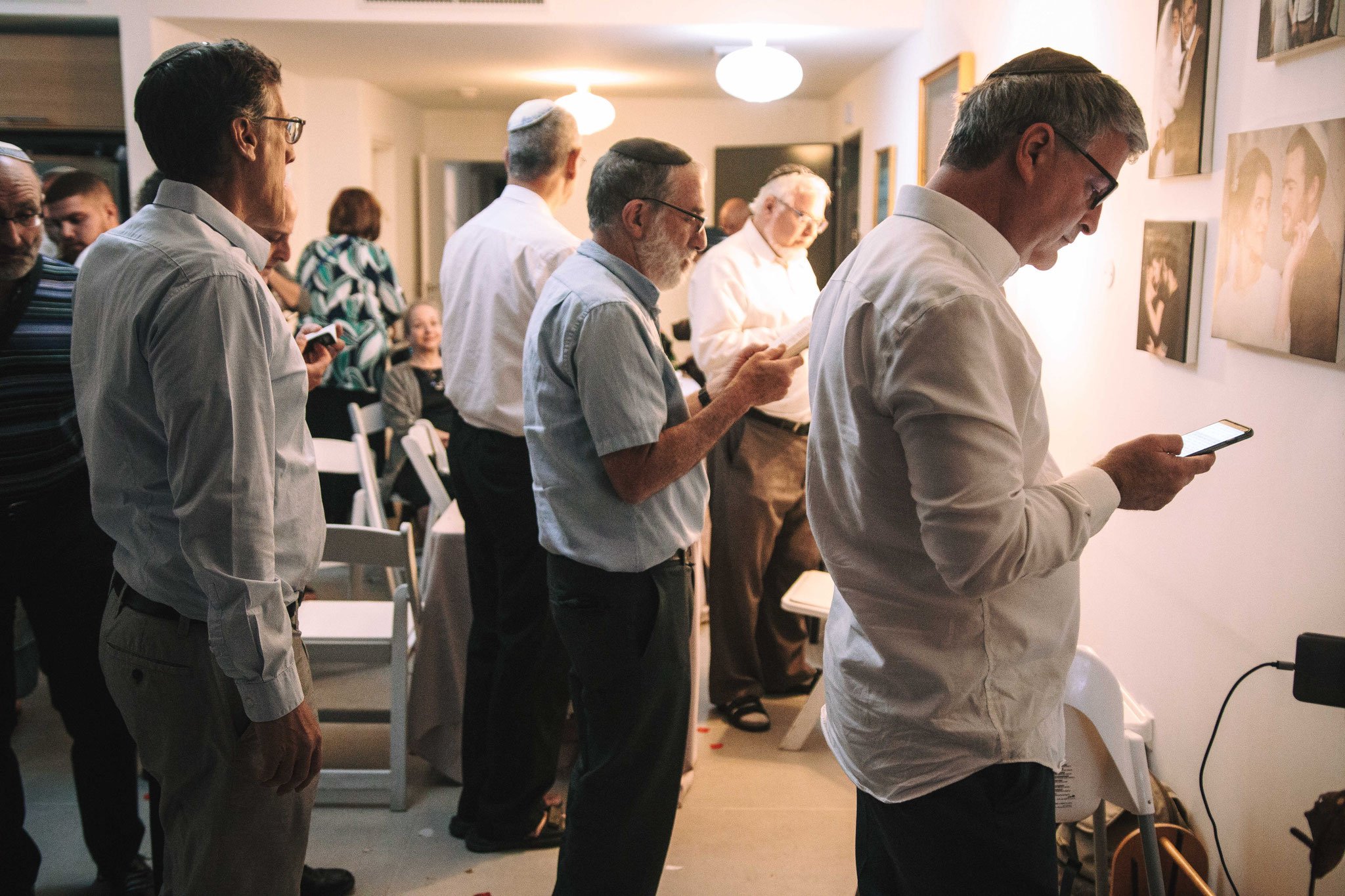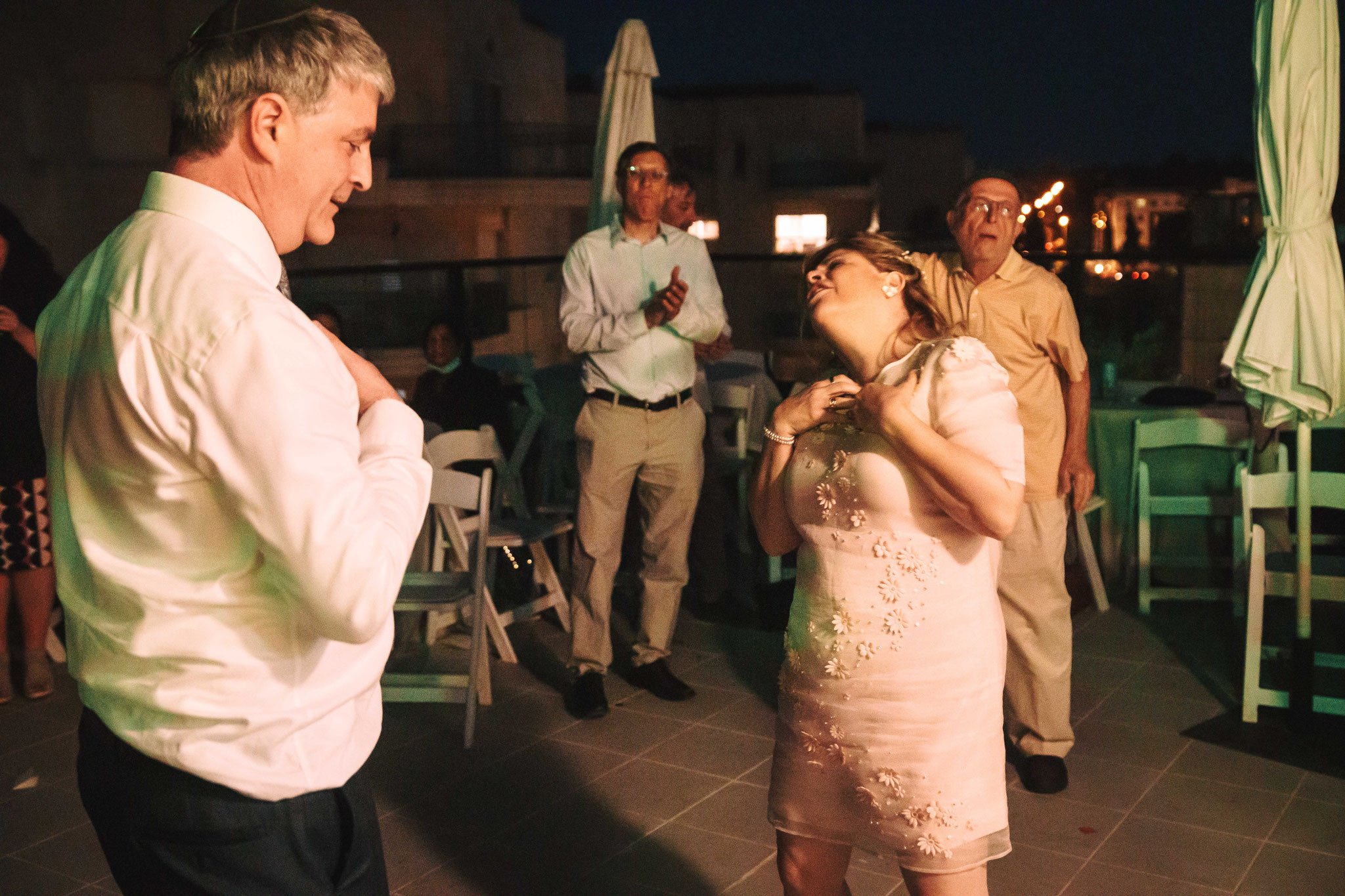 ג'ון מתחיל להשתחרר מעט אני מבקש להוסיף תנועות ריקוד. כשברקע מתנגן לו שיר משנות ה 80 אשר כיכב במצעד הפזמונים ותוך כדי אני מצרף את המשפחה לצילומים ומופתע כשאני רואה את ילדיהם של הזוג מנישואים קודמים יחד עם הנכדים זורמים עם המוזיקה הישנה וגם סגנון לבושם של בני המשפחה חגיגי ובו אמירה שגם דתיים יודעים להתלבש. לאט לאט אורחים נוספים מגיעים והדודות של הזוג בחרו להצטלם ביחד למזכרת ובתה שהצטלמה עם בעלה והחיוך על פניה מספר שהיא מרוצה שאמא לא תהיה בודדה יותר. ובנו של החתן שגם לא חסך במבטו עם אשתו את שביעות רצונו מהיום הזה